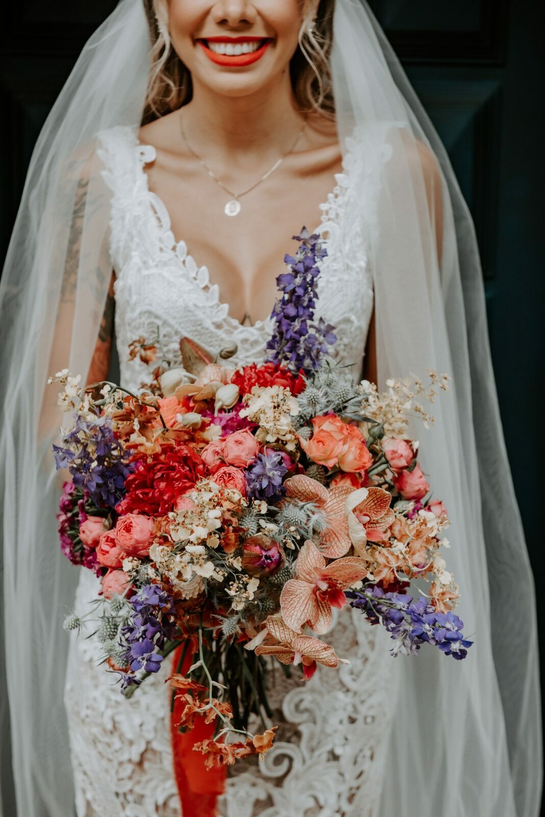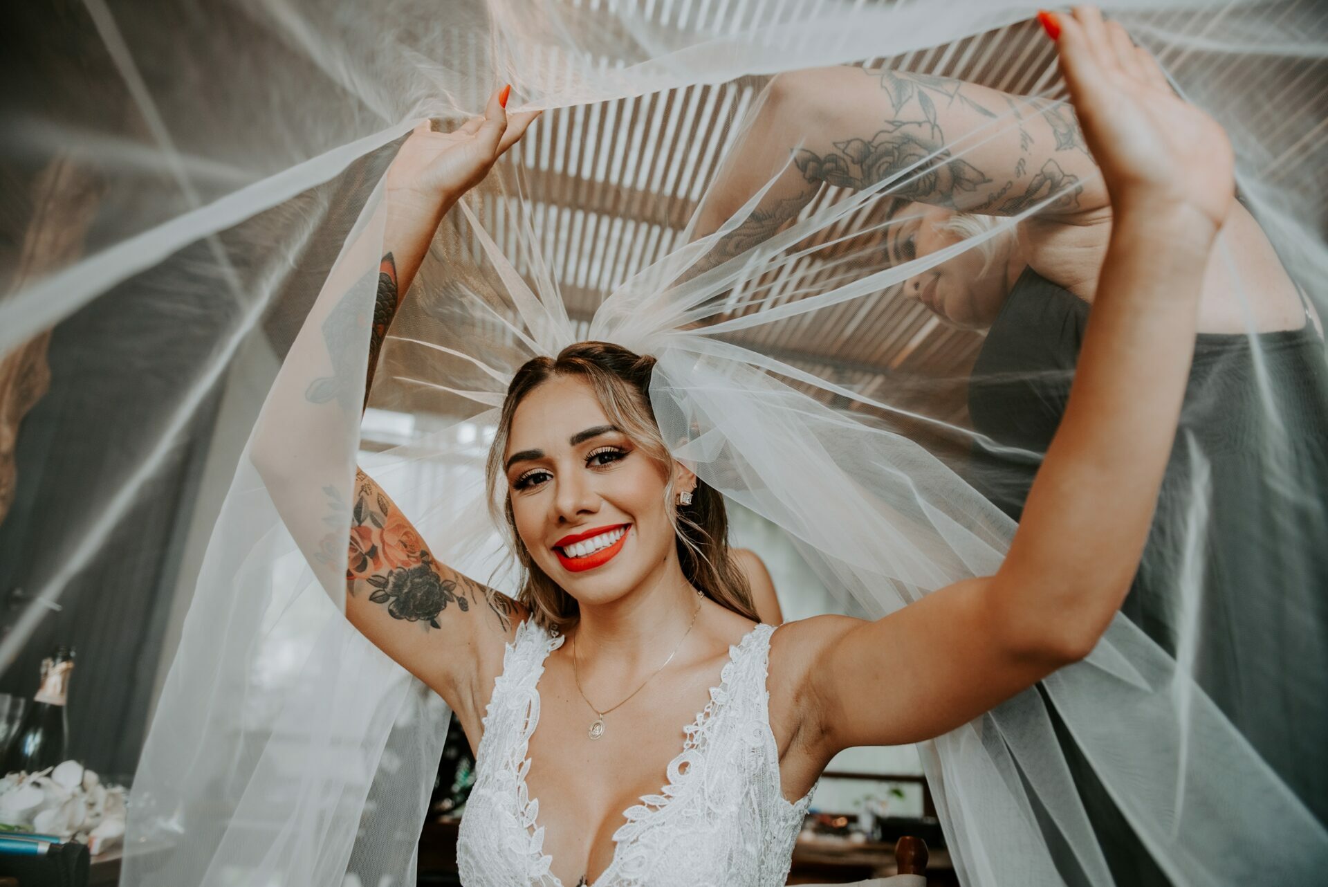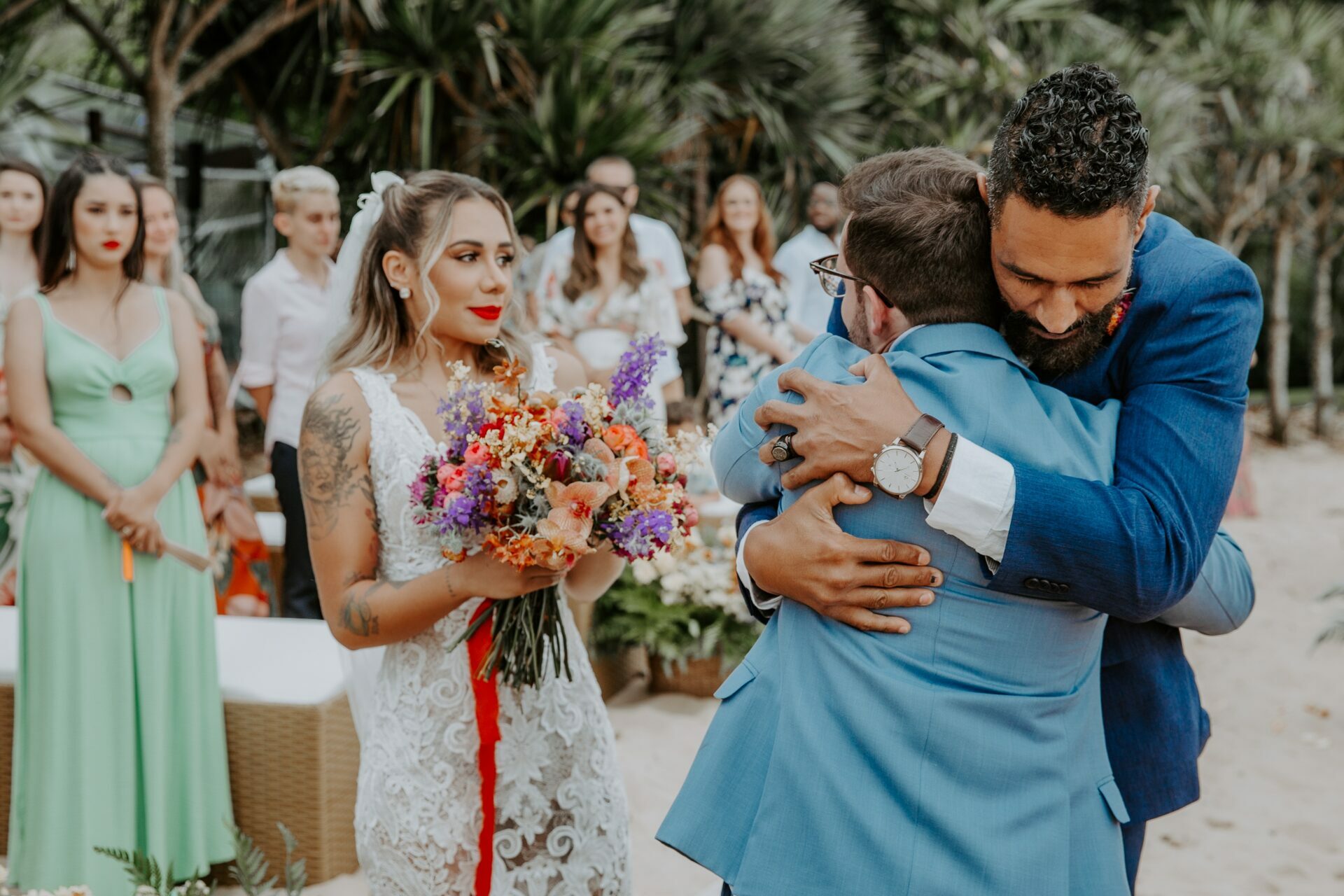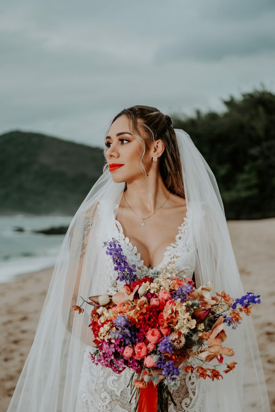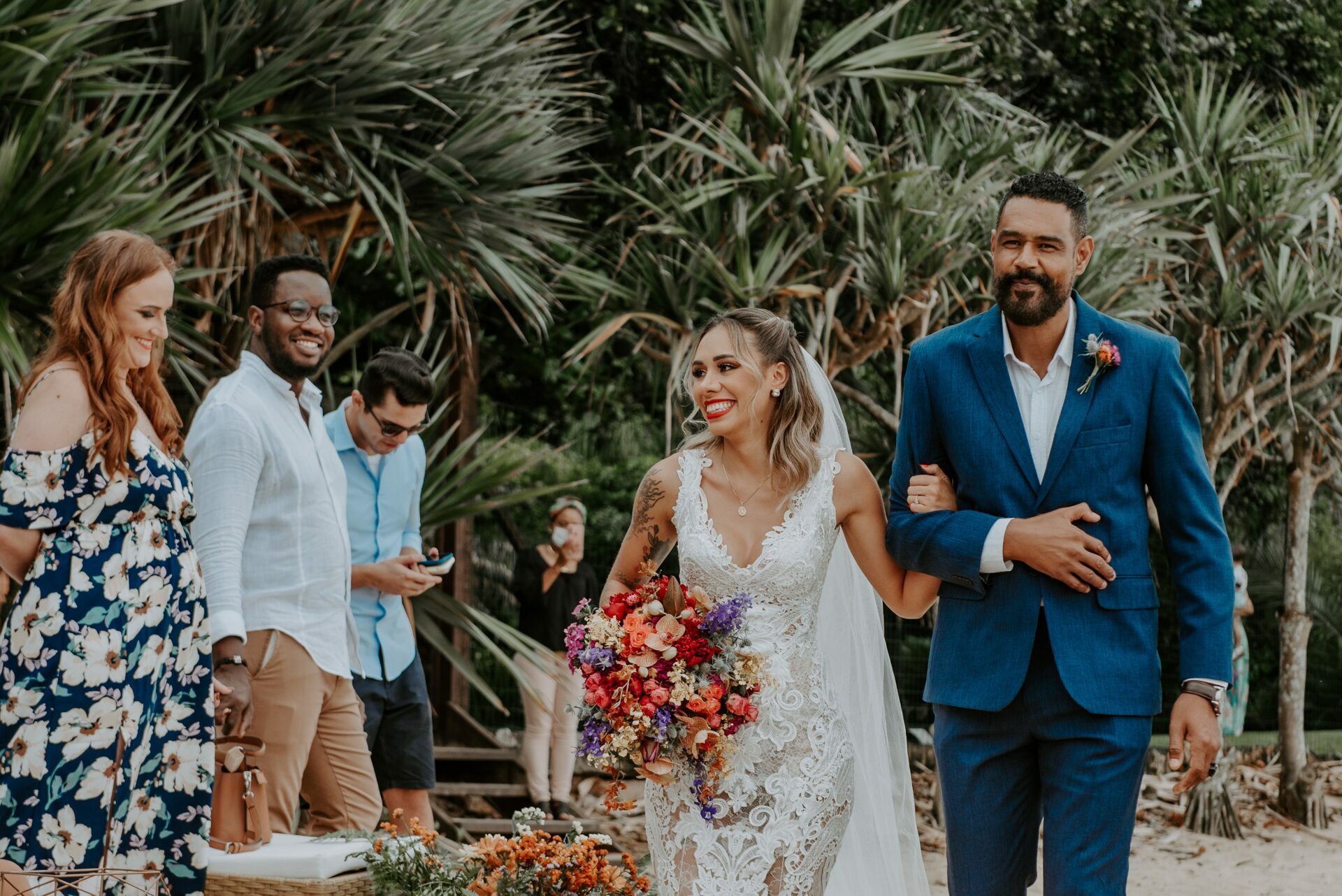 Do buquê multicolorido ao batom vermelho da noiva, cada item é uma explosão de cores que transmitem felicidade.