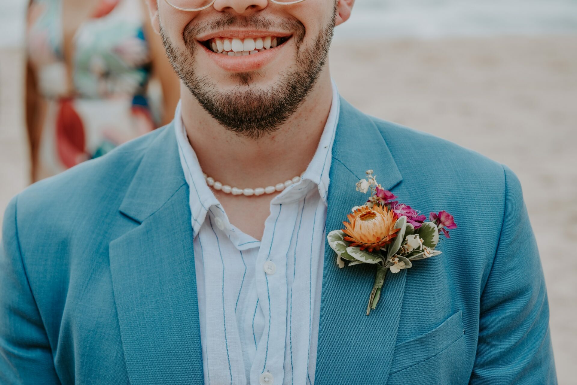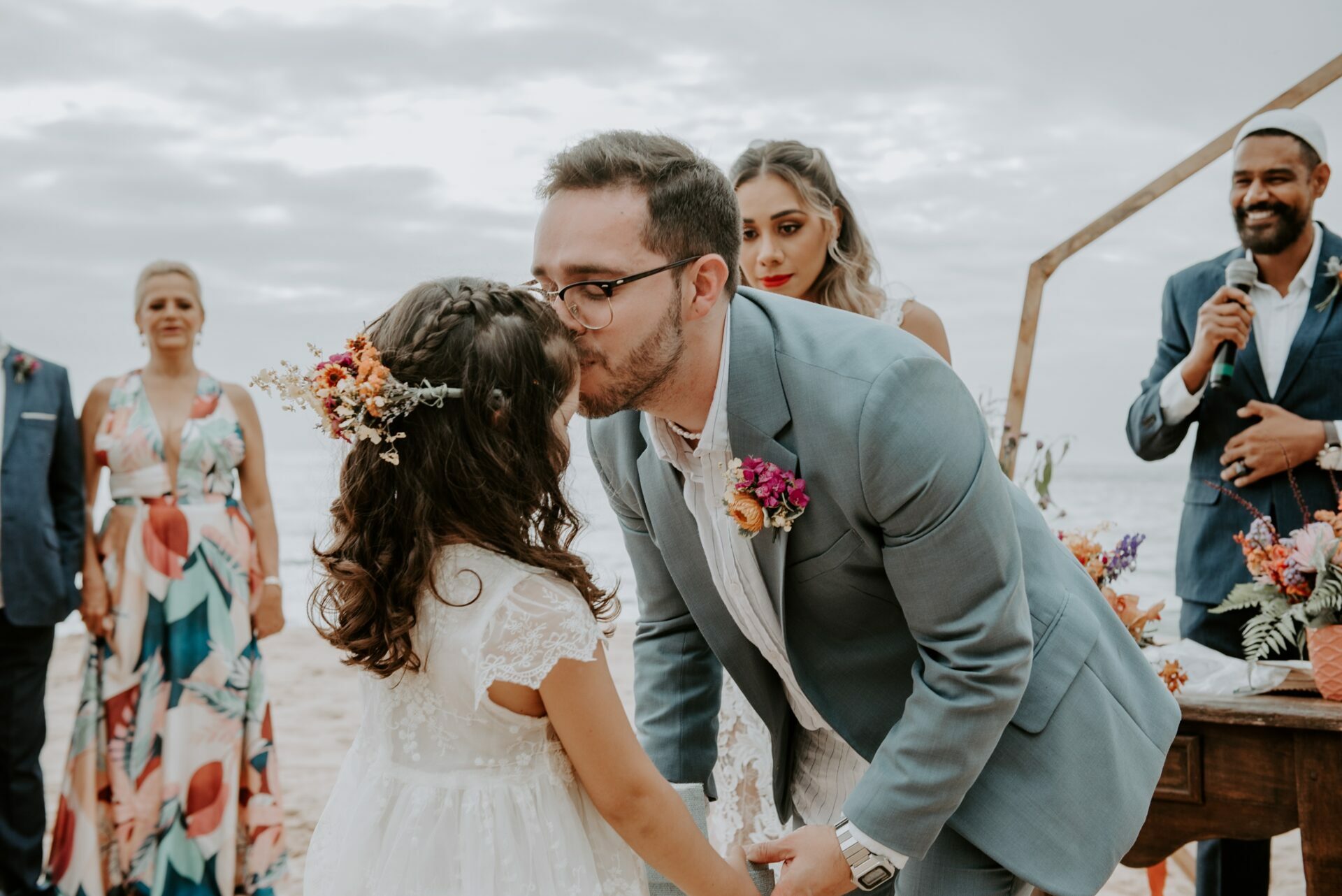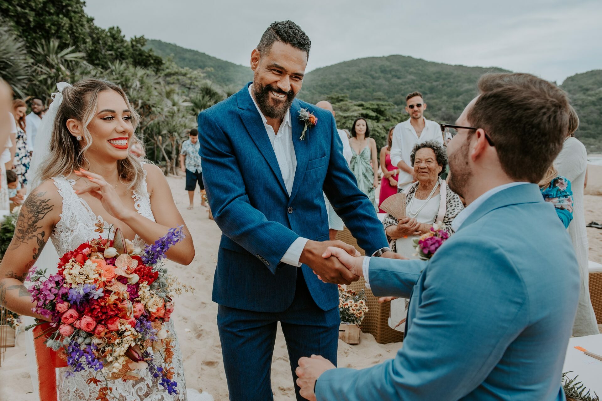Cores, sorrisos em muito amor: casamento vibrante na praia