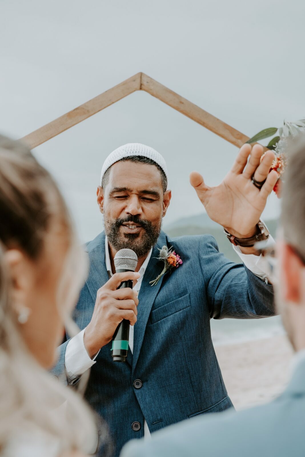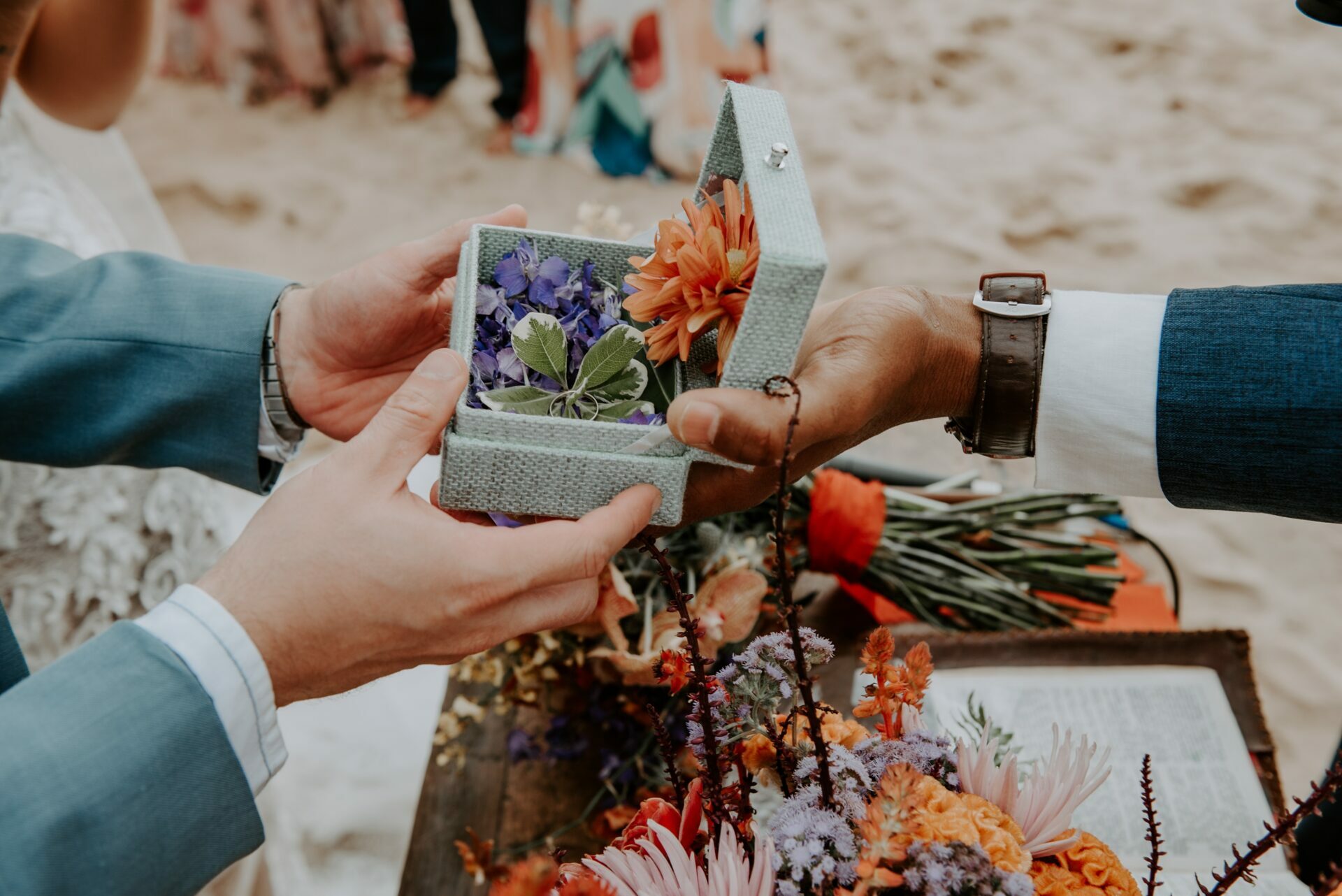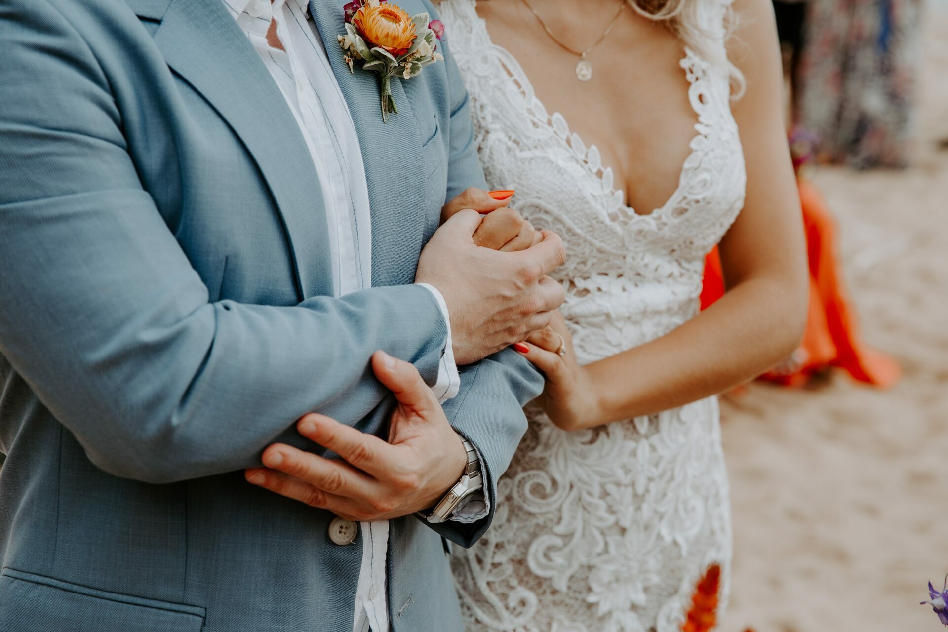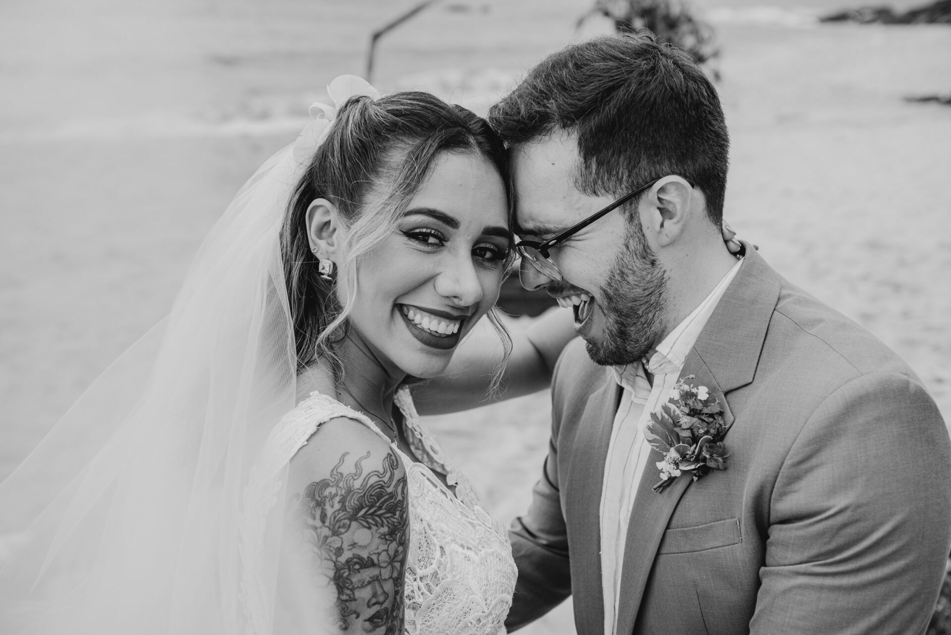 Cores, sorrisos em muito amor: casamento vibrante na praia
