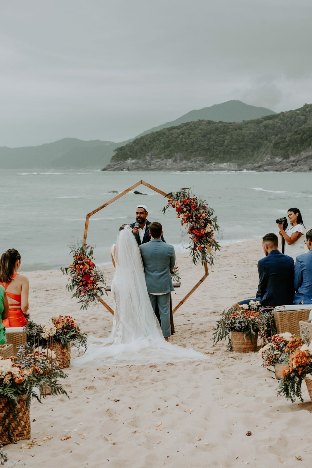 O casamento vibrante na praia ainda incluiu paleta alegre e muitos detalhes especiais.