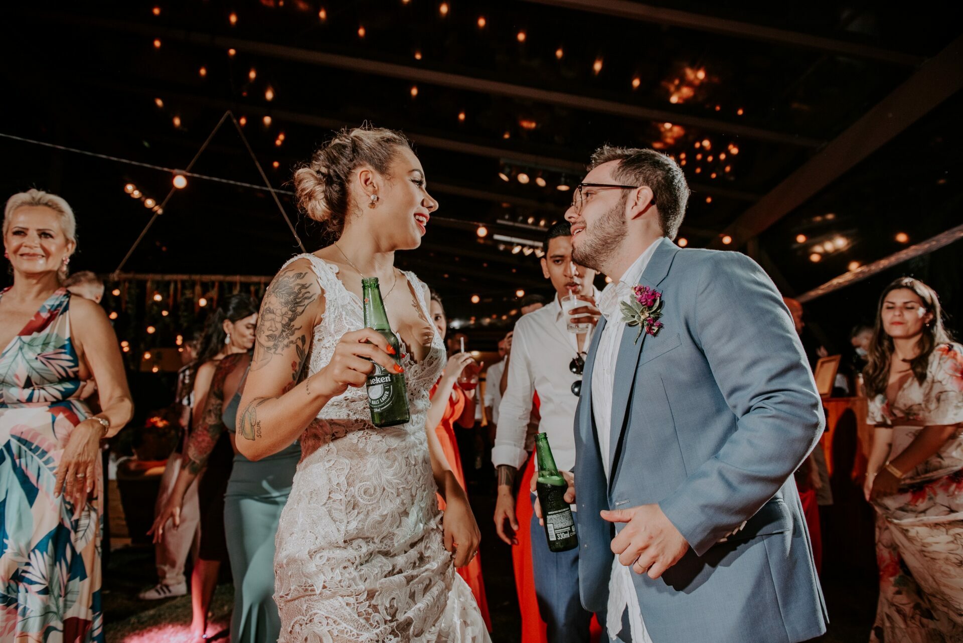 Reparem, por exemplo, no look despojado do noivo, na mesa de doces cheia de texturas e no cenário para fotos com direito a neon. Com toda a certeza, vocês vão amar! ♥