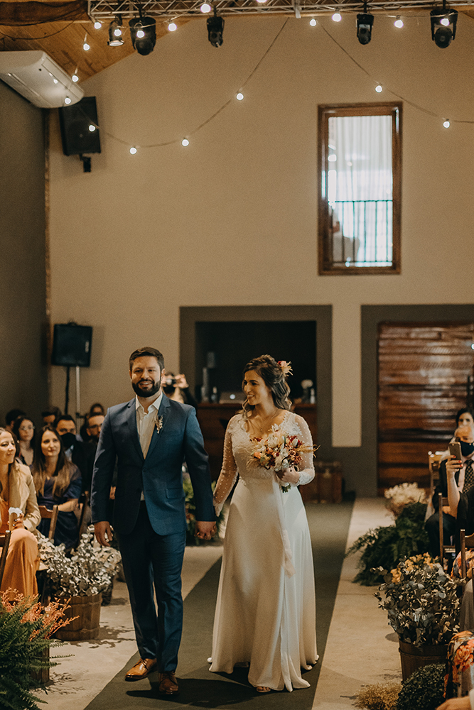“Acima de tudo, as escolhas nos representaram muito. Entramos juntos na cerimônia ao som de Jack Johnson – Better Together -, tocado no saxofone. Tudo lindo e leve, do jeito que a gente idealizou.