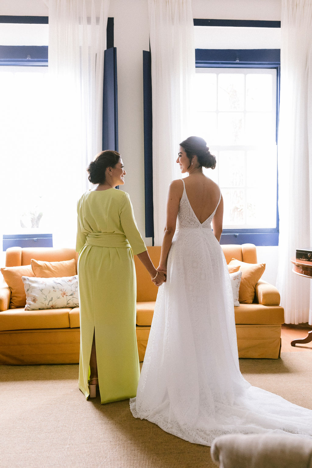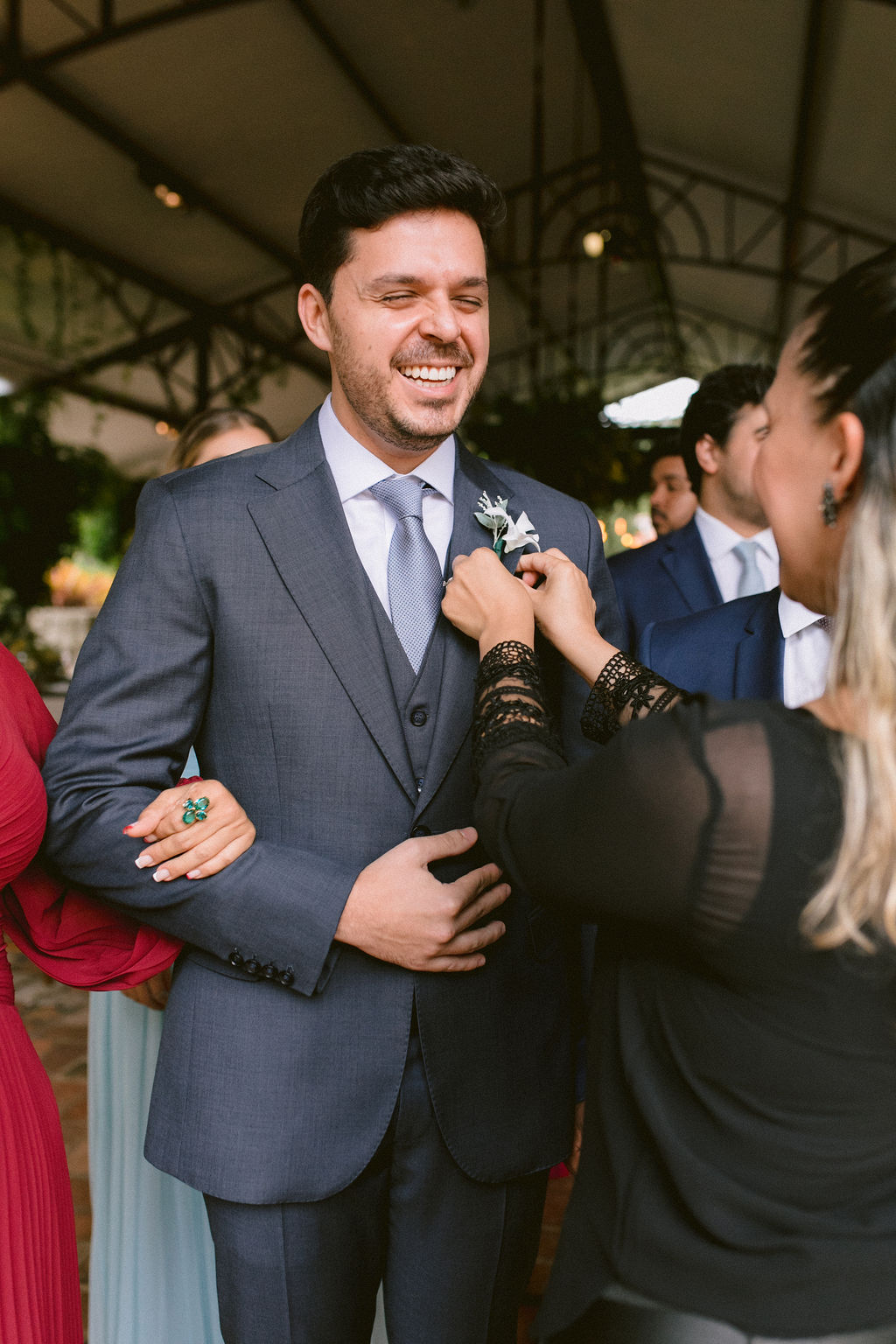 Mantivemos os pais por perto para que presenciassem esse momento. A emoção foi contagiante ao ver o amor e a cumplicidade da família.