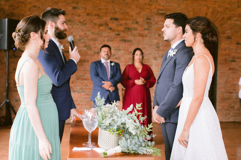 Comandando o enlace, Stefanie Belo e Lucas Cristiano dividiram o papel de assessores. Amigos da mãe da noiva, ambos toparam o match que rendeu a festa perfeita que veremos a seguir.