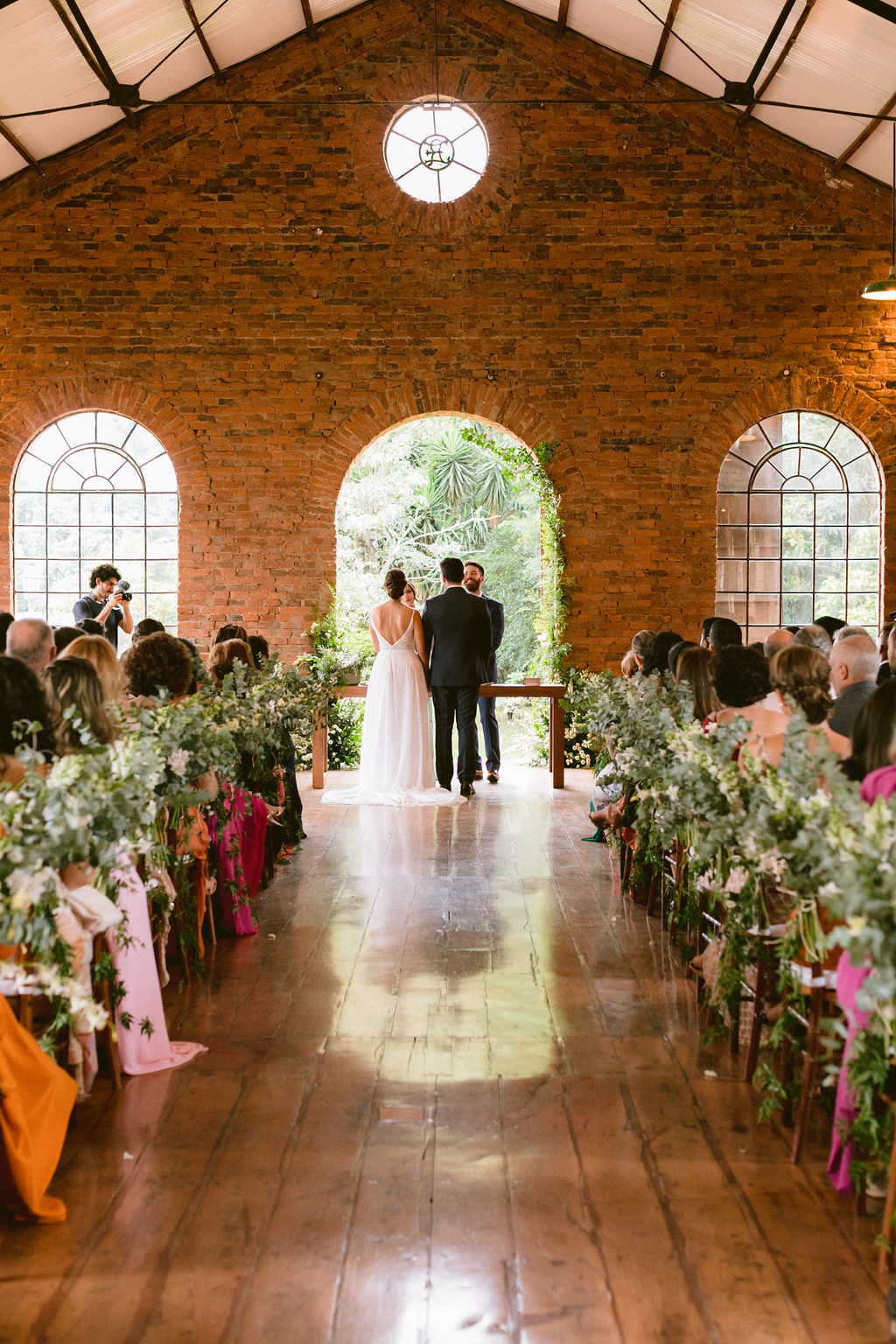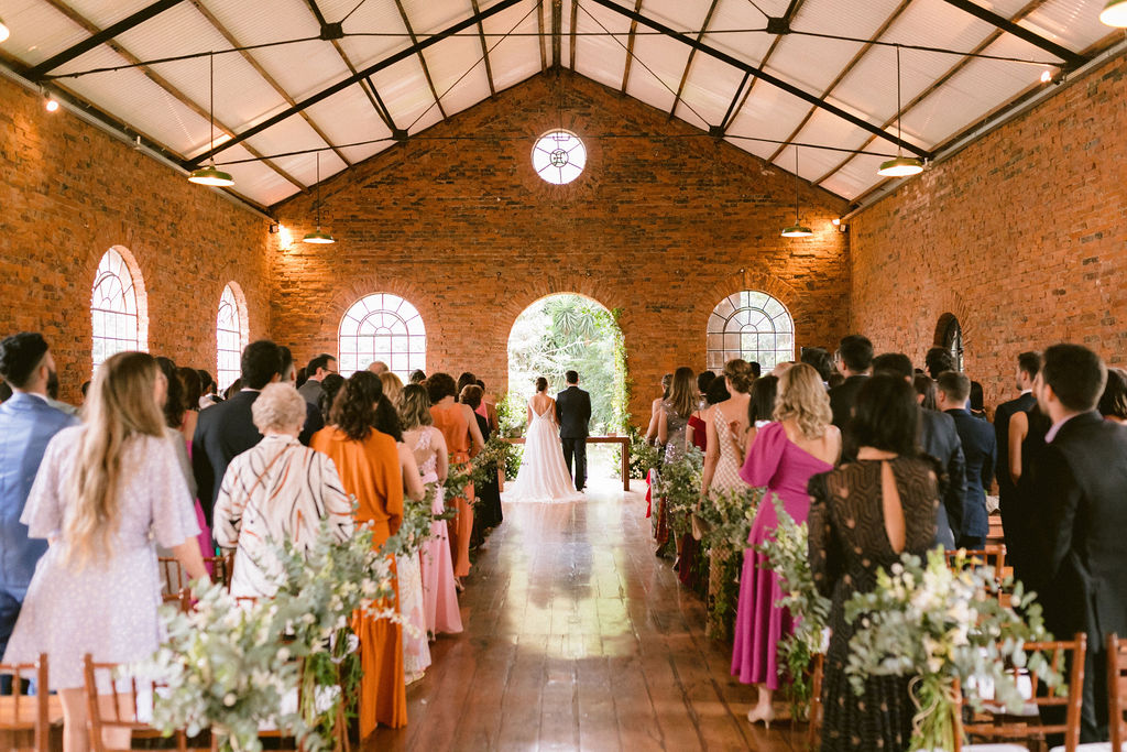 Tínhamos o desejo de casar fora de São Paulo, em um local que tivesse mais contato com a natureza. Ao mesmo tempo, não gostaríamos de estar muito longe e nem ter que lidar com o imprevisto do tempo, caso a cerimônia fosse ao ar livre. Ao entrar na Fazenda Quilombo e nos deparamos com um local super histórico, todo coberto com as aberturas laterais que permitem o contato com a natureza e com hospedagem para algumas pessoas, então sabíamos que tínhamos encontrado o local.