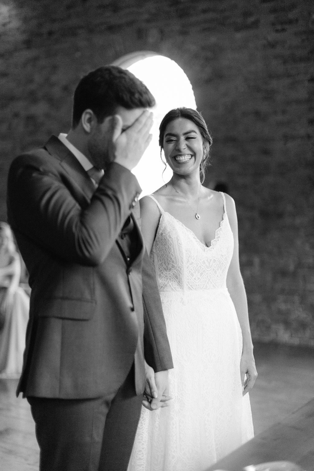 Começando pelo firstlook que não seria com o noivo, mas sim com o irmão caçula da noiva. Aline e Gustavo são muito próximos e ela queria que ele tivesse o privilégio de vê-la antes da cerimônia.