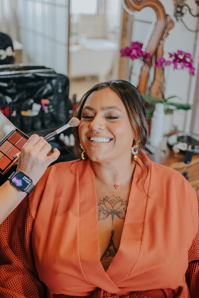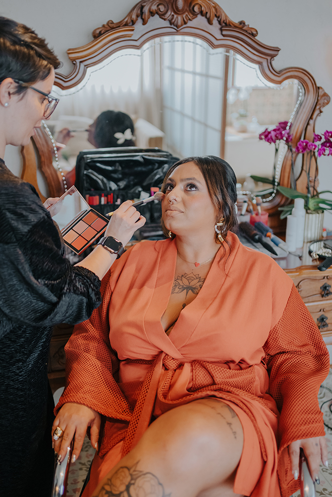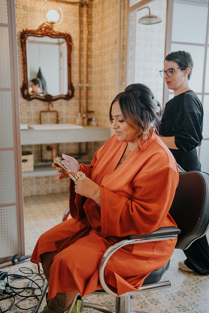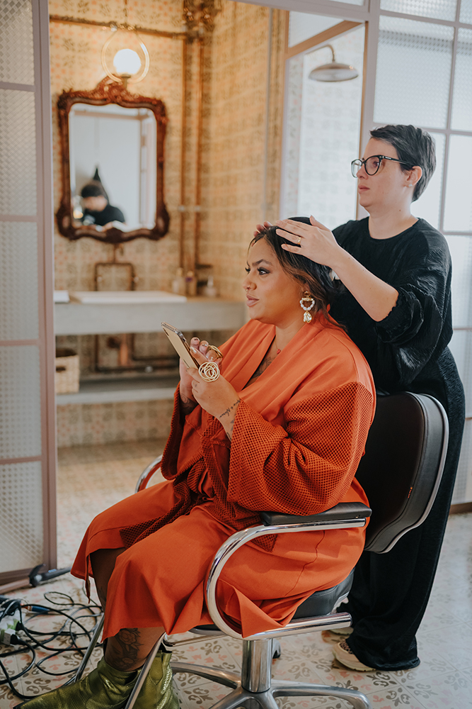 Para a beleza, Ju Toledo trouxe penteado despretensioso e olhos marcados, deixando nossa noiva ainda mais poderosa.