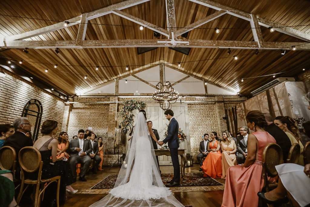 Optaram por celebrar o amor no Celeiro Quintal, espaço encantador que reune uma série de qualidades importantes para o casal. Marcela e Danilo não queriam sair de São Paulo, mas faziam questão de um cenário especial, prático e agregador.