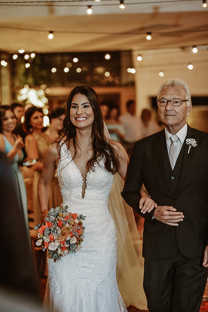 Mesmo escolhendo um espaço completo, os noivos fizeram questão de dar seu toque pessoal ao casamento. Isto é, buscaram incluir detalhes especiais ao grande dia, o que fez toda a diferença!