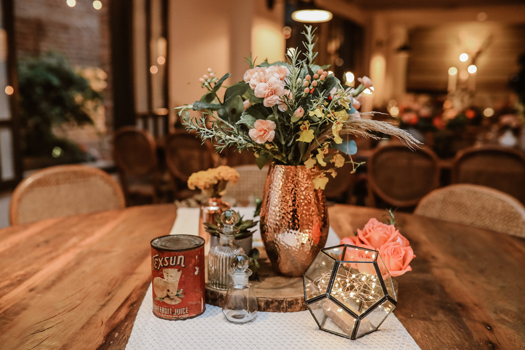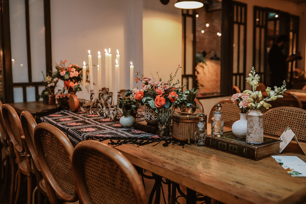 “Buscamos algo que pudesse ter a nossa identidade, com um toque especial, sem sair de São Paulo. Já conhecia o Grupo Quintal quando me deparei com a página do Celeiro no Instagram. Num passeio de final de semana, decidimos parar por ali (o espaço fica em Pinheiros, perto de casa), e quando entrei me apaixonei! Foi amor a primeira vista.