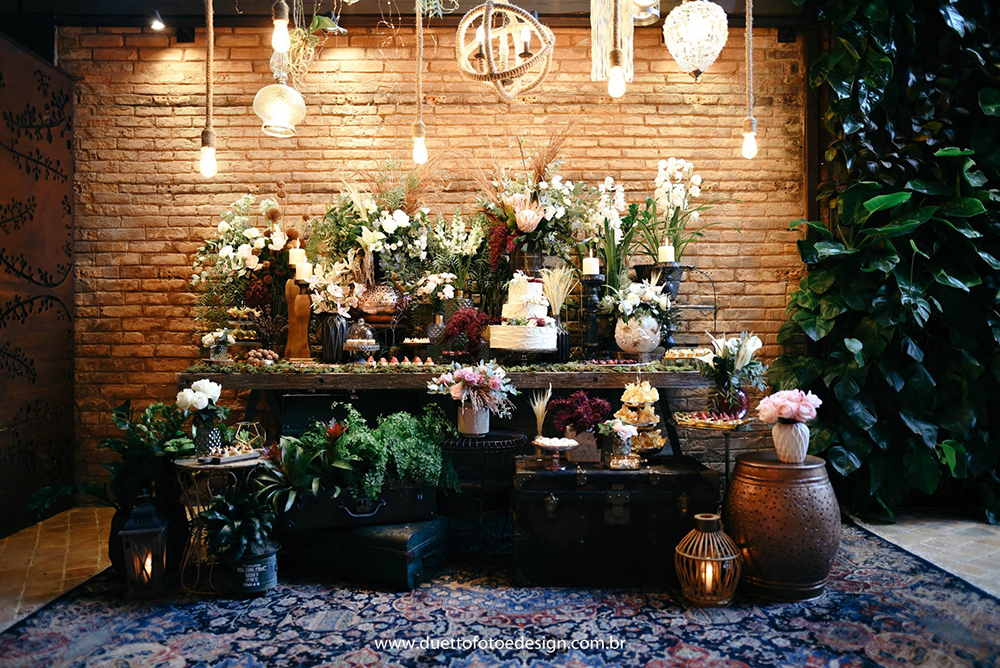 Sobre os preparativos, inicialmente queríamos um lugar aberto com bastante natureza. Chegamos a ver lugares em Cotia, mas achamos que não seria prático para os convidados. Também, queríamos que fosse em São Paulo porque é onde vivemos atualmente. Como somos do interior, desejávamos um lugar que nos remetesse as nossas origens interioranas.