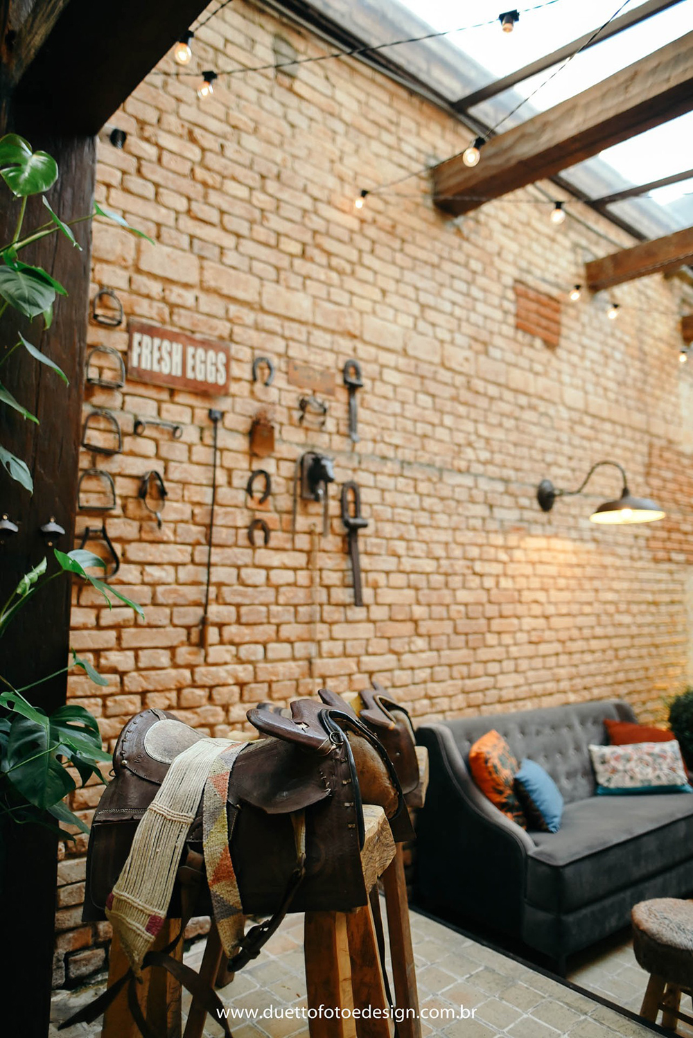 Um lugar bem integrado, exatamente como queríamos. A decoração estilo fazenda, com um toque boho chic, era tudo o que imaginávamos e dentro de São Paulo. A casa já era bem decorada, pedindo somente muitas plantas e flores.