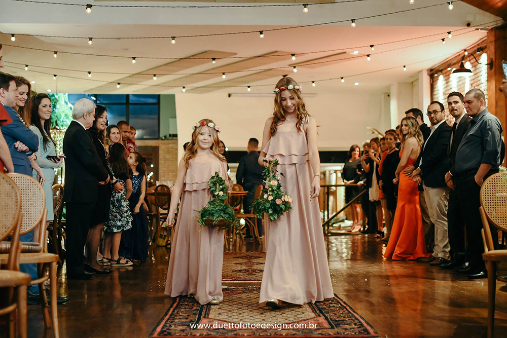 Sobre daminhas e pajens, como amamos cerveja artesanal, inclusive temos um Bar no Centro chamado TapTap, decidimos colocar duas floristas jogando flor de lúpulo para a minha passagem.