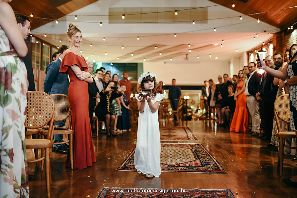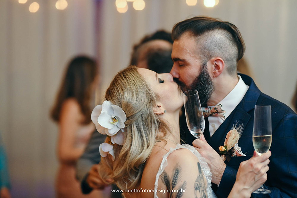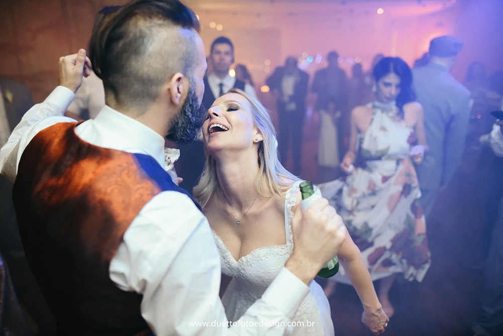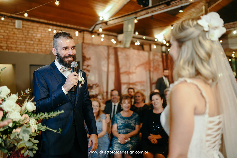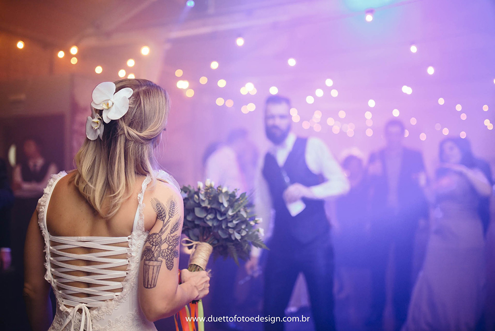 Já os fotógrafos, olhamos diversos, mas não queríamos nada padrão, com fotos paradas ou tradicionais, até que encontramos o Duetto. O mesmo pensamos para a filmagem. Não queríamos nada tradicional, aqueles vídeos cansativos de uma hora e meia. Buscamos algo mais moderno, que mostrasse os melhores momentos com uma edição bem bacana.