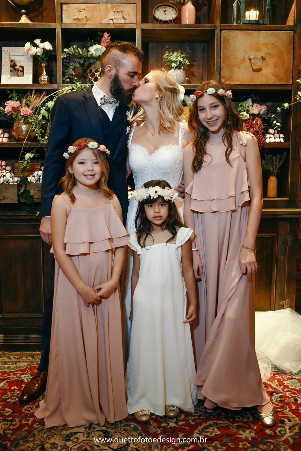 Uma conhecida sugeriu o Marcos Curiati, disse que havia feito uma reunião com ele, gostado muito, porém tinha fechado com um padre para agradar os pais. Assistimos os vídeos dele e adoramos. Ele entendeu exatamente o que pensamos. Fechamos com ele e foi demais!