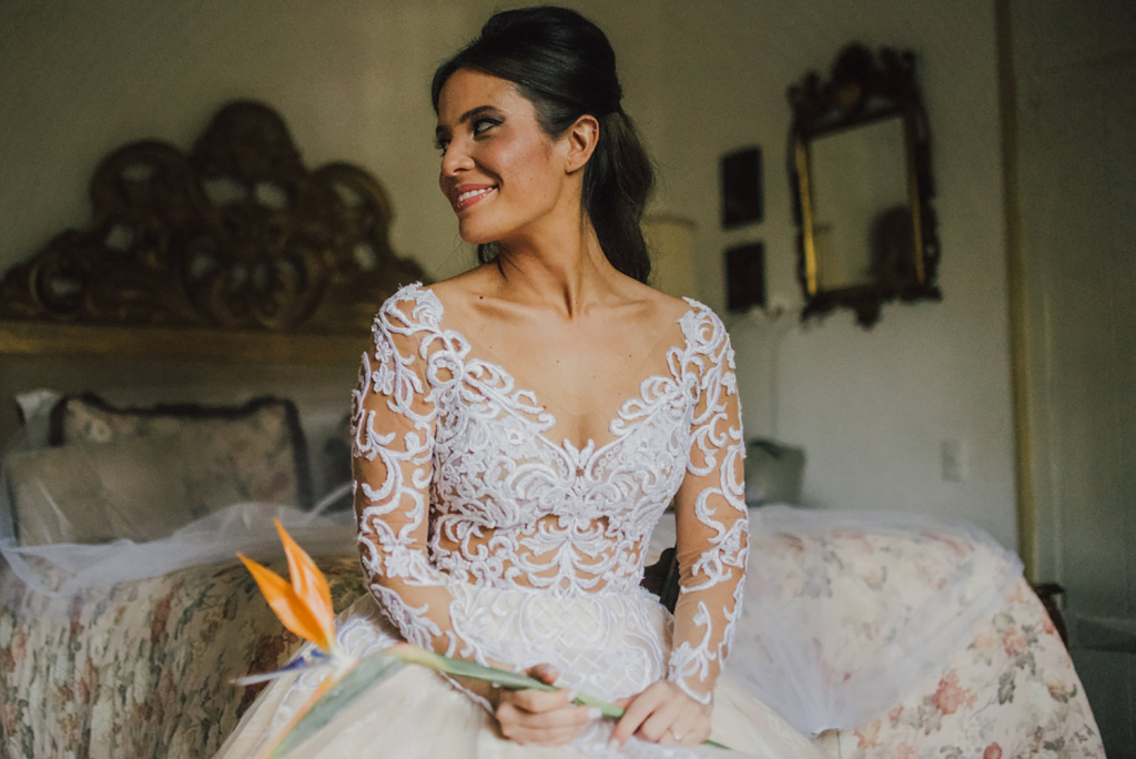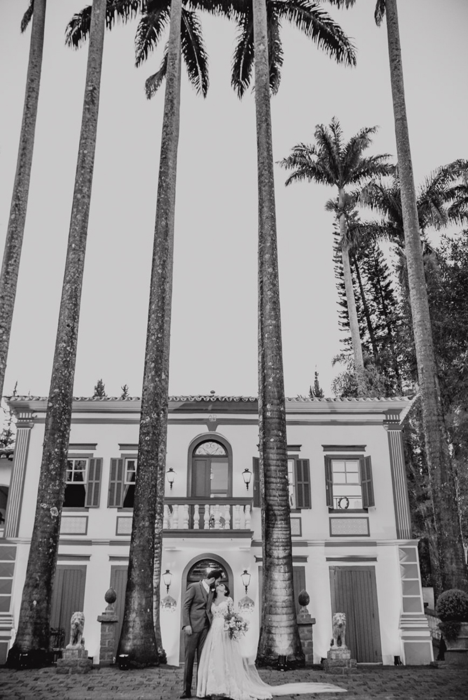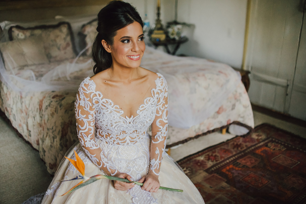 Escolhemos a Fazenda Santa Bárbara como cenário para o grande dia. A fazenda é única e você sente essa energia na primeira vez em que pisa lá, seja pelas palmeiras imperiais ou pelo charme da sede histórica. A sede principal é muito bem estruturada para o dia da noiva e o making of fica lindo. A equipe é atenciosa e muito receptiva.