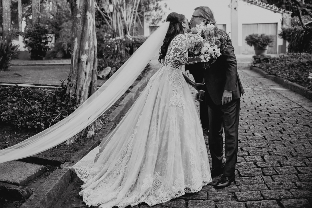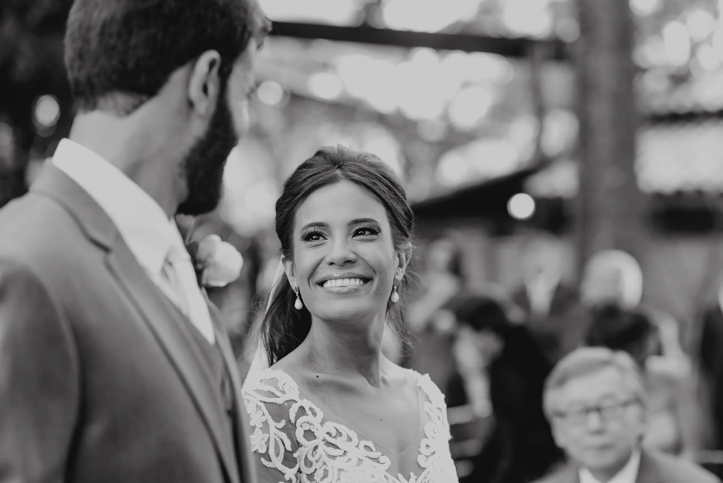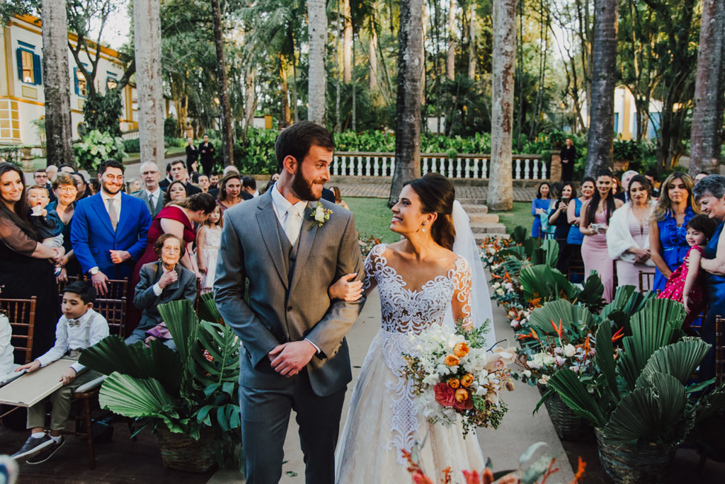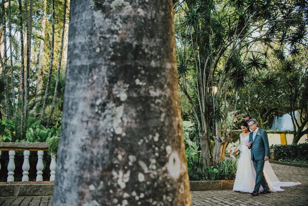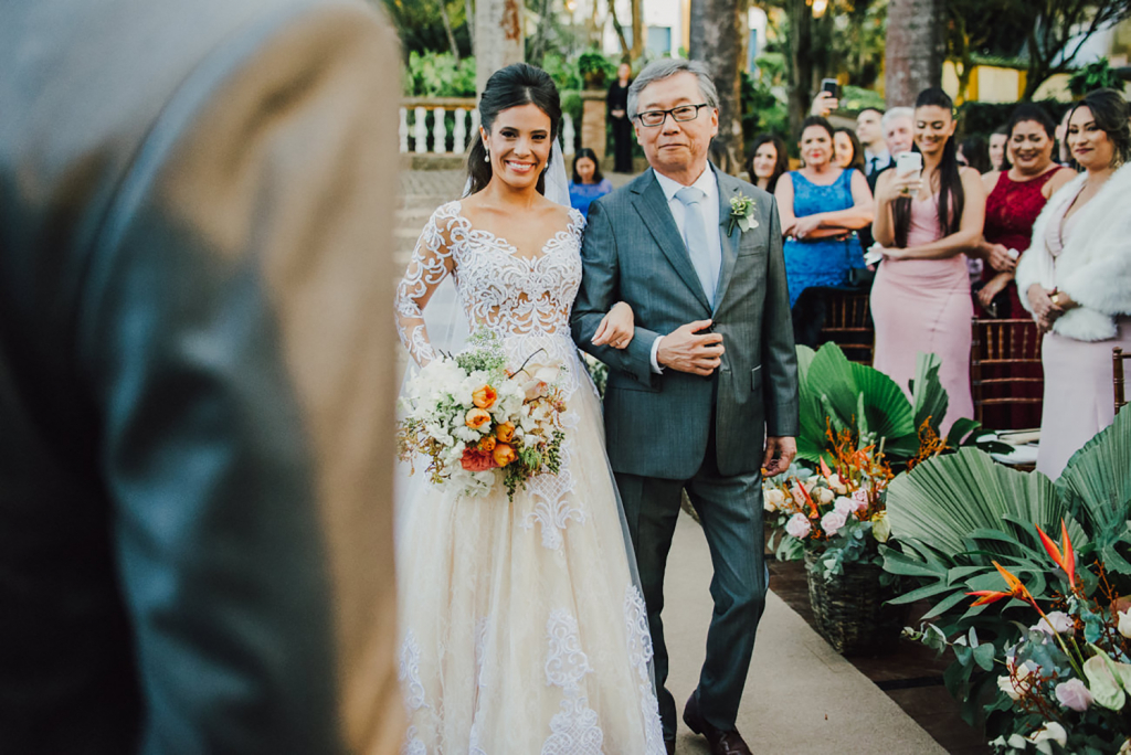 A entrada da cerimônia foi o momento mais emocionante. É único e mágico, parecia que estava em um filme. Ver tantas pessoas queridas reunidas, caminhar ao lado do meu pai, e ir de encontro com o amor da minha vida para nos casar…