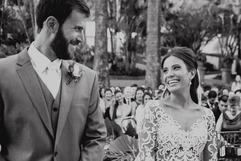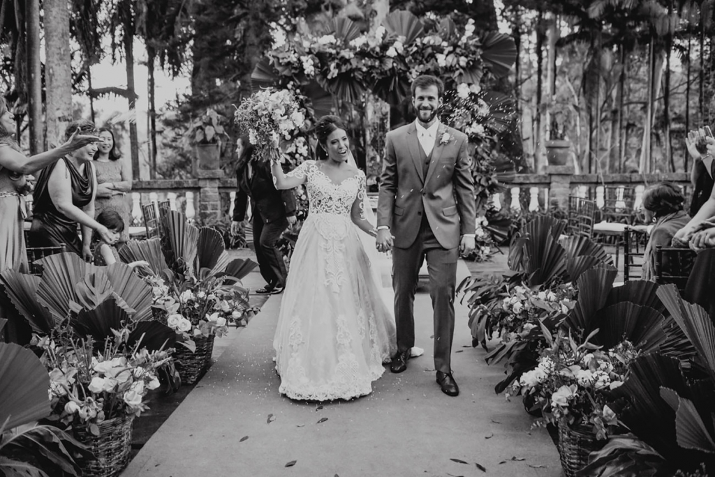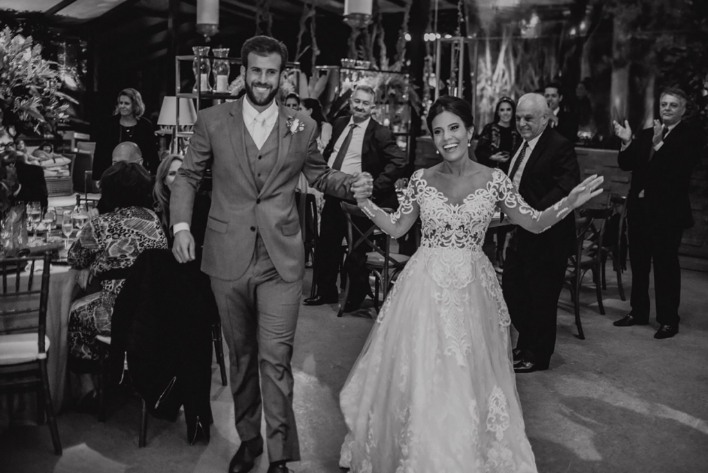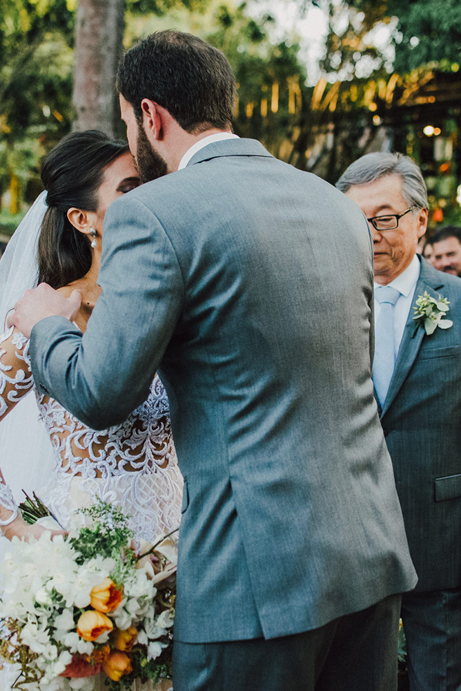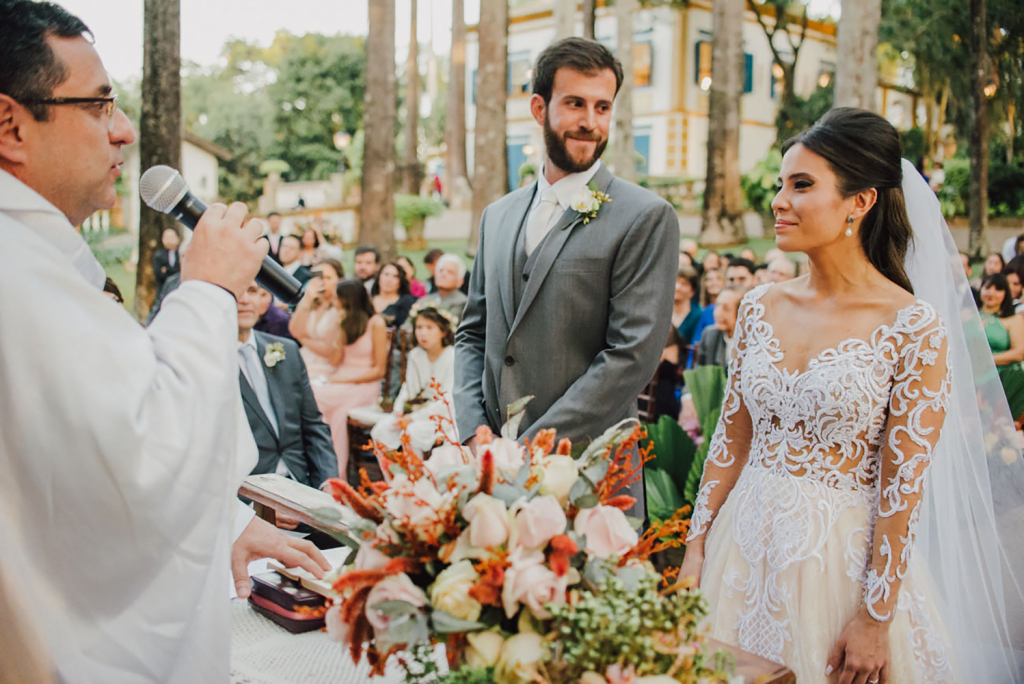 A entrada da cerimônia foi o momento mais emocionante. É único e mágico, parecia que estava em um filme. Ver tantas pessoas queridas reunidas, caminhar ao lado do meu pai, e ir de encontro com o amor da minha vida para nos casar…