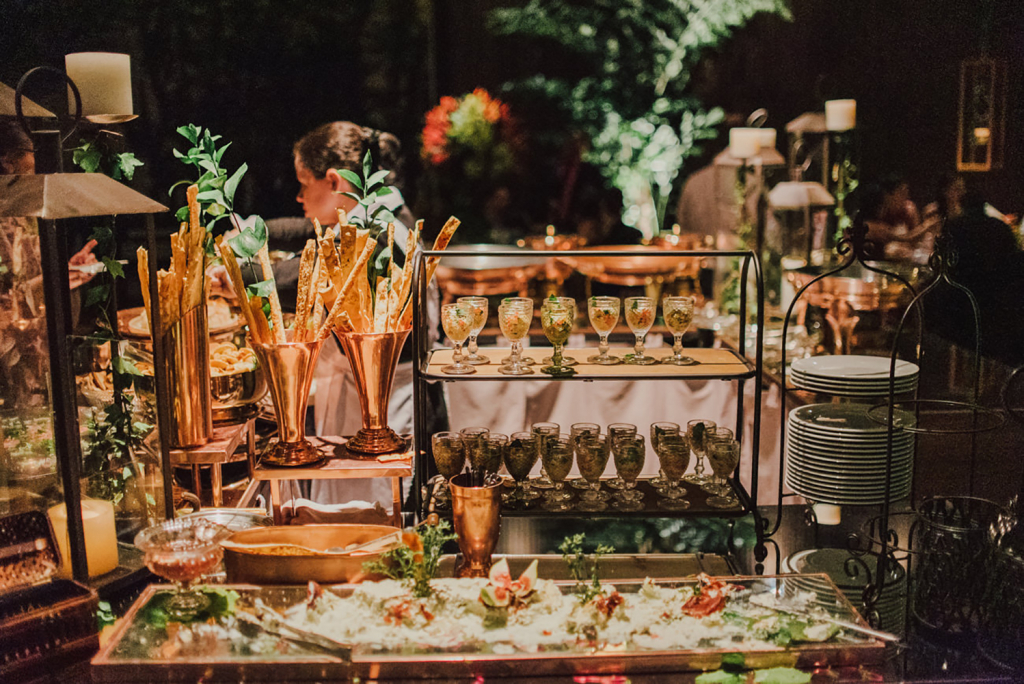 Fechamos 8 horas com o buffet e o bar, suficientes para um casamento na fazenda. O bar servia drinks sofisticados, com bilhetinhos e até flor comestível.