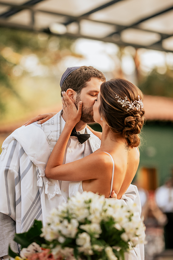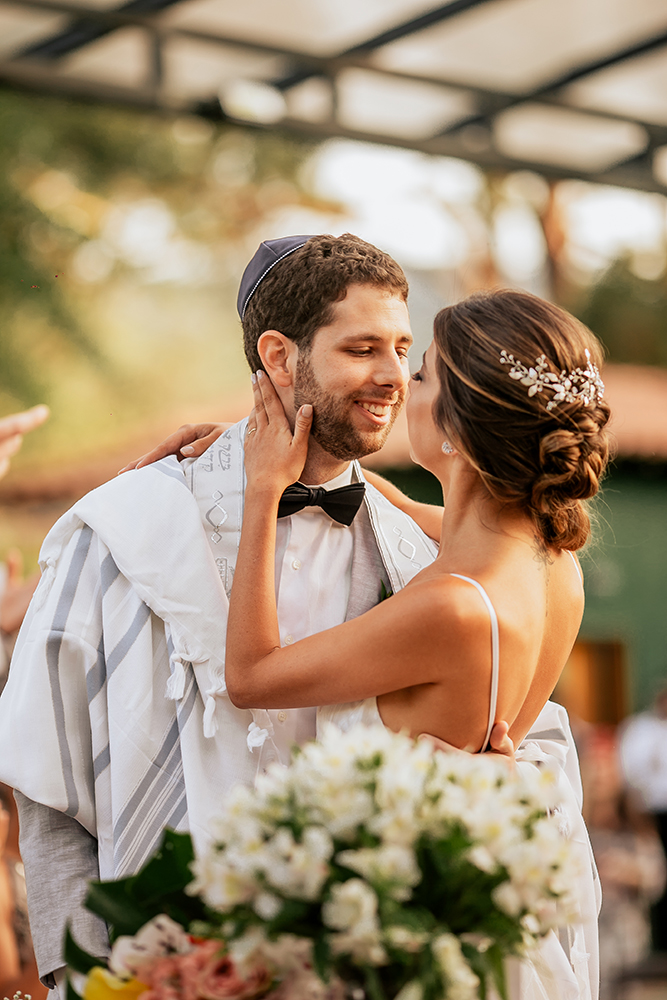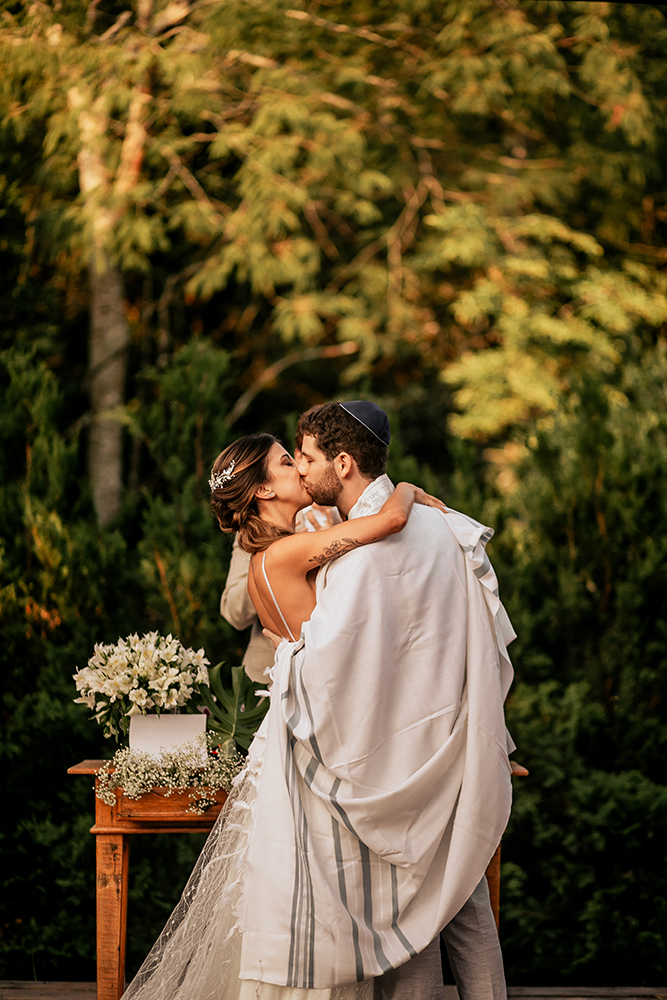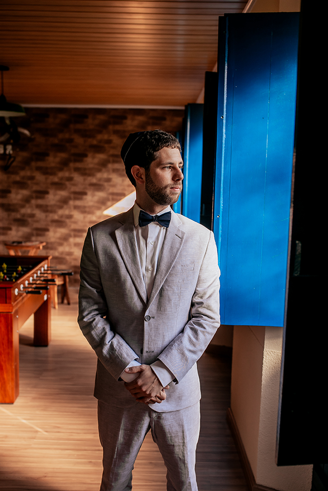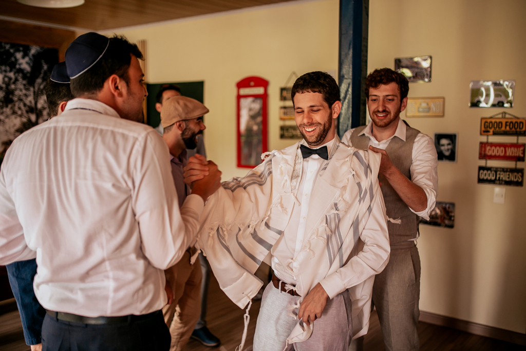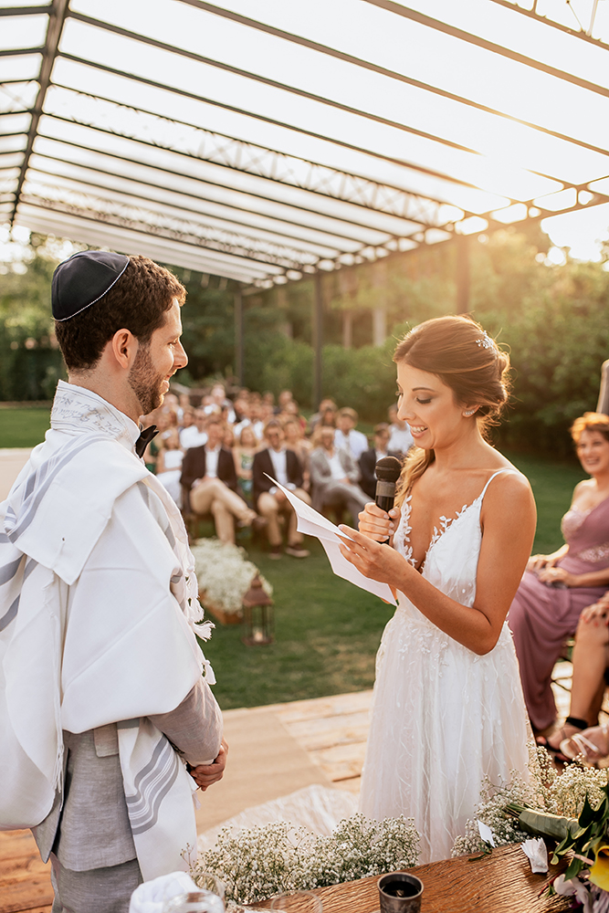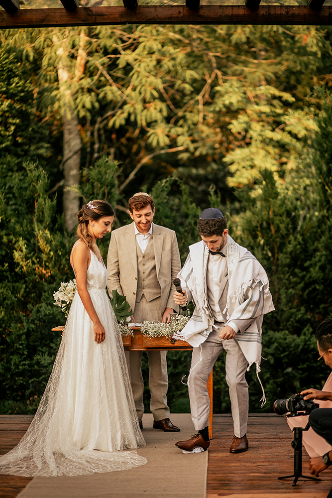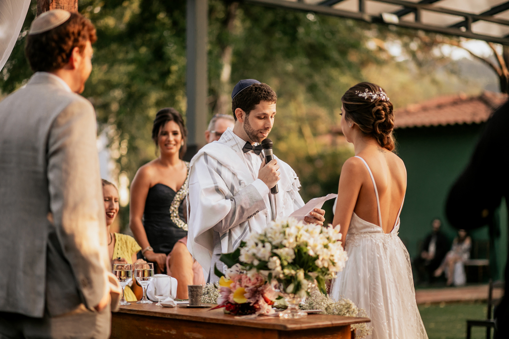Optamos por um amigo para ser nosso celebrante. O Noam é nosso amigo desde crianças, também é judeu e sabe bastante sobre a cultura judaica, além de falar super bem em público! Foi perfeito!