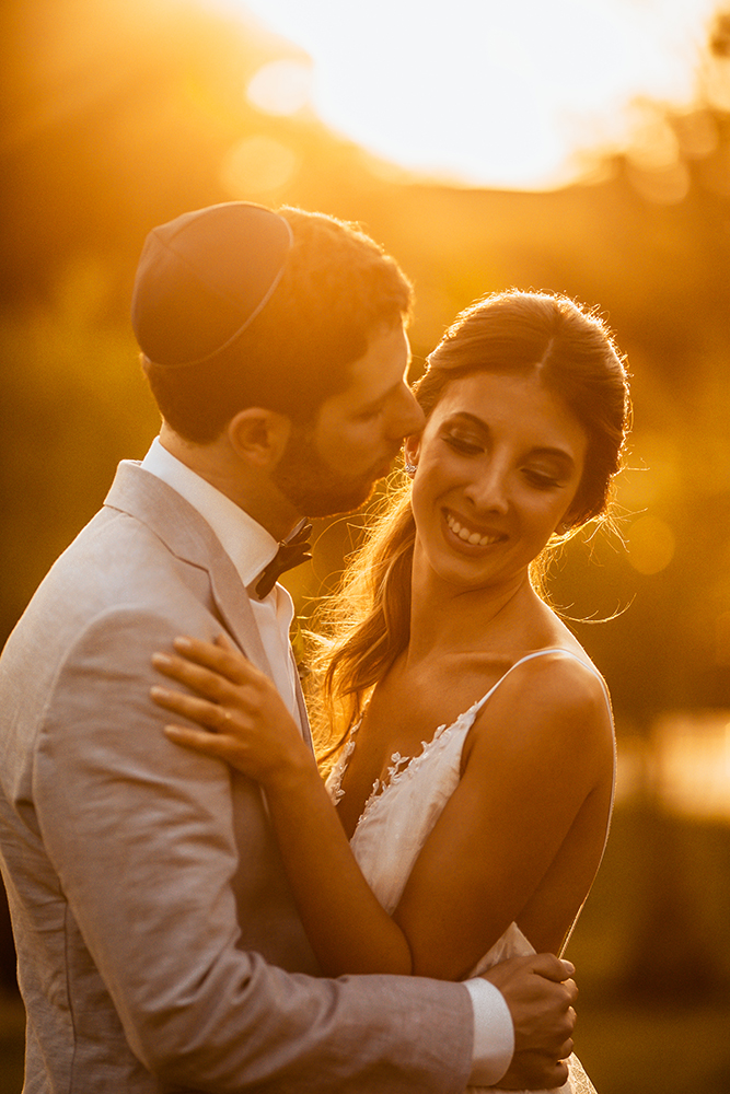 Eu e o Fábio somos judeus, gostamos muito da cultura e dos costumes judaicos, mas não somos muito religiosos. Não frequentamos nenhuma sinagoga com frequência, então não queríamos que um rabino (que a gente nem ia conhecer direito) fizesse a nossa cerimônia.