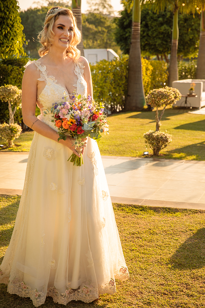 Meu buquê e vestido então, tão maravilhosos que me senti uma princesa saída de um conto de fadas!