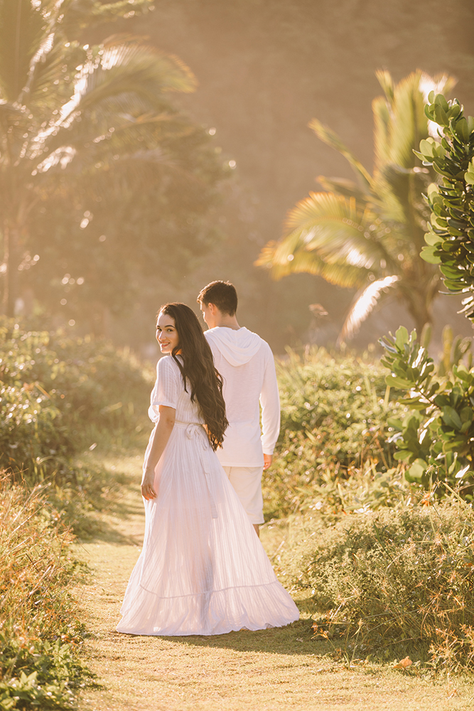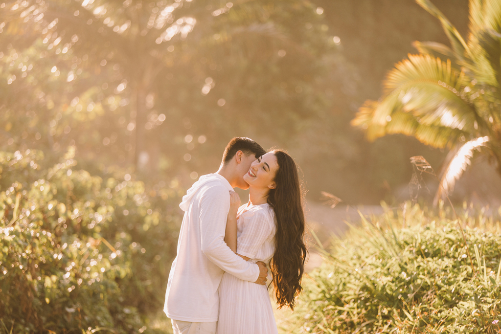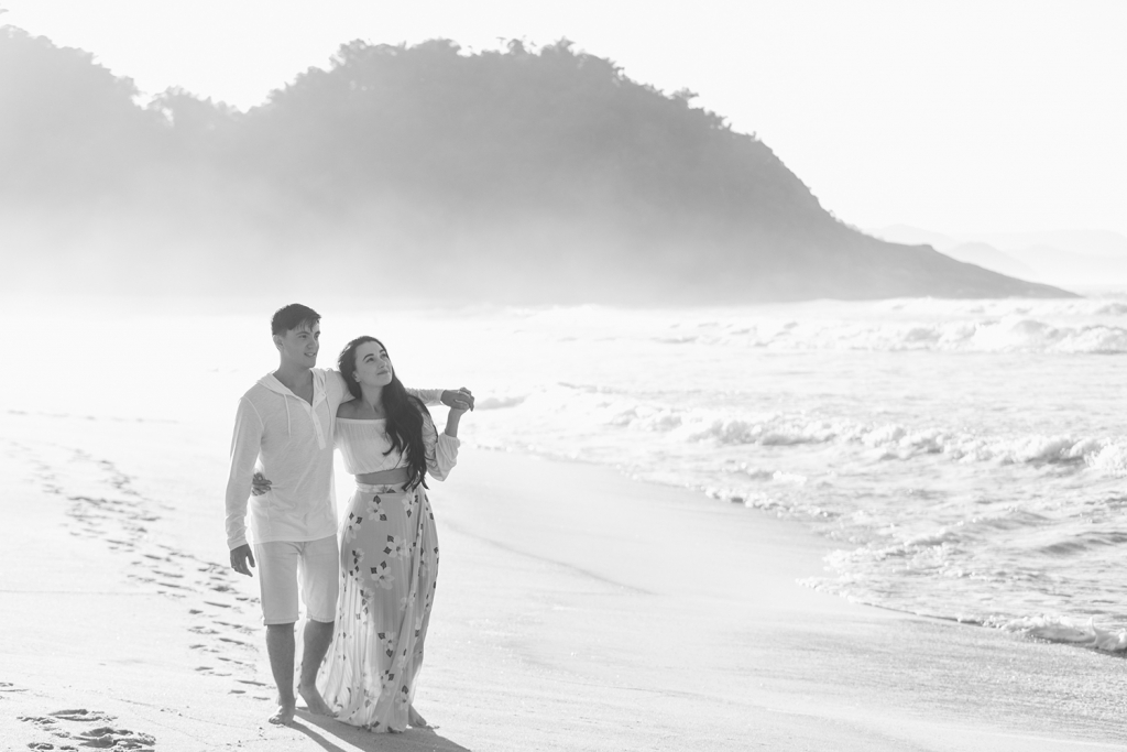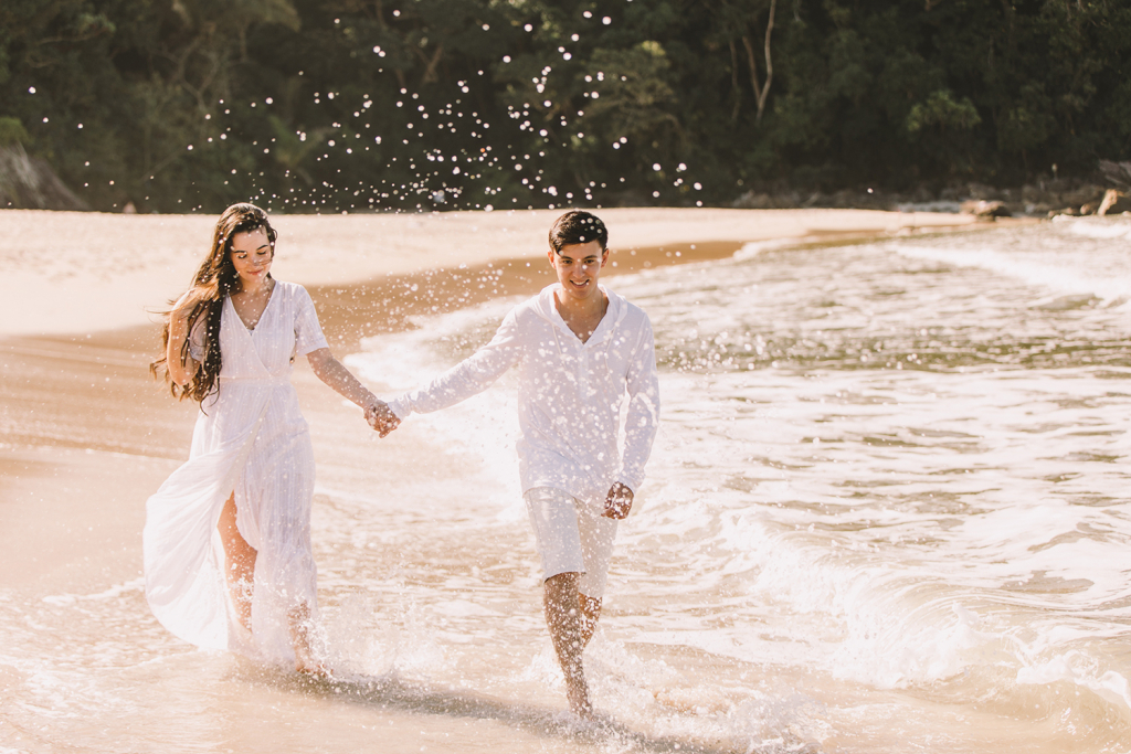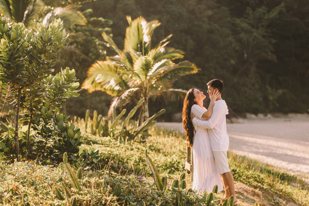 Os pombinhos escolheram fazer o pré wedding na Praia da Juréia, em São Sebastião.