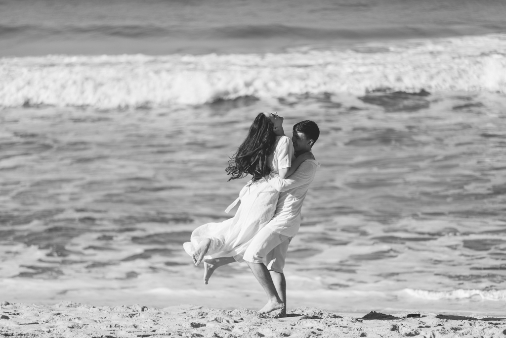 Sempre sonhamos em fazer nosso ensaio na praia, não só por amarmos a natureza, mas também ser um local de válvula de escape para nós em momentos difíceis.