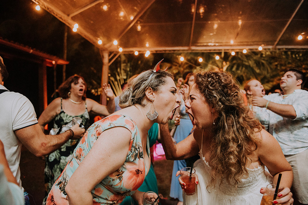 A cerimônia foi conduzida por um de nossos melhores amigos, todos os padrinhos fizeram uma rede de segurança e energia em volta de nós durante a celebração toda, plantamos juntos uma árvore como símbolo de crescimento e nossos votos foram pensados pela manhã, no mesmo dia do casamento, para que fosse verdadeiro e cheio da emoção que estávamos sentindo naquele momento.