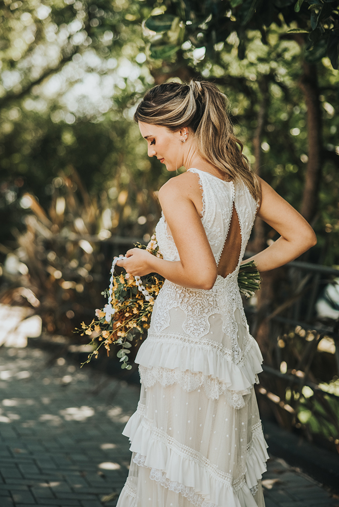 Outro ponto alto é o vestido de noiva My Vintage Dress. Como os noivos queriam uma pegada boho, o vestido não poderia ser assinado por outra marca!