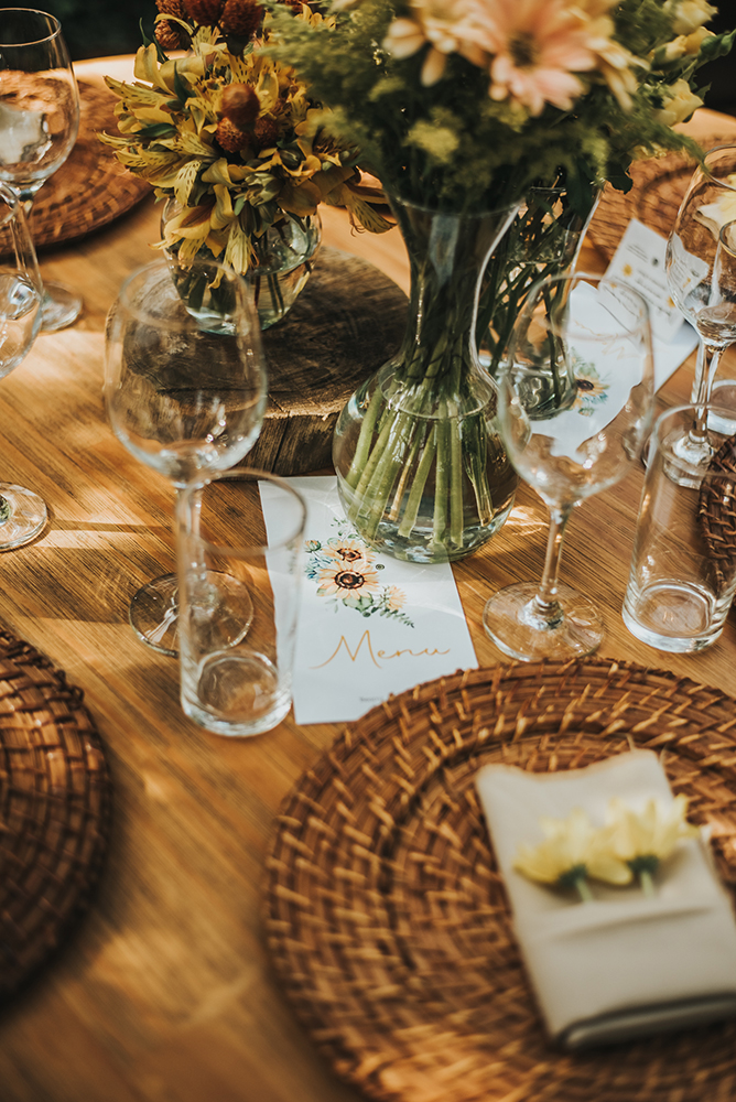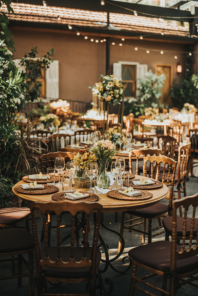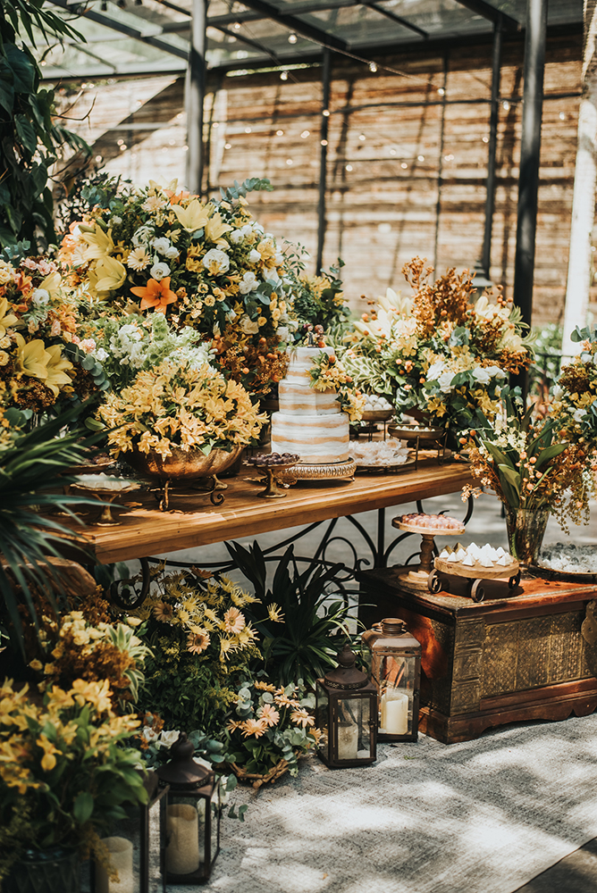 Dessa forma, todos os elementos e detalhes foram pensados para combinar com algo da nossa história, incluindo o estilo boho, com elementos rústicos e autenticidade.