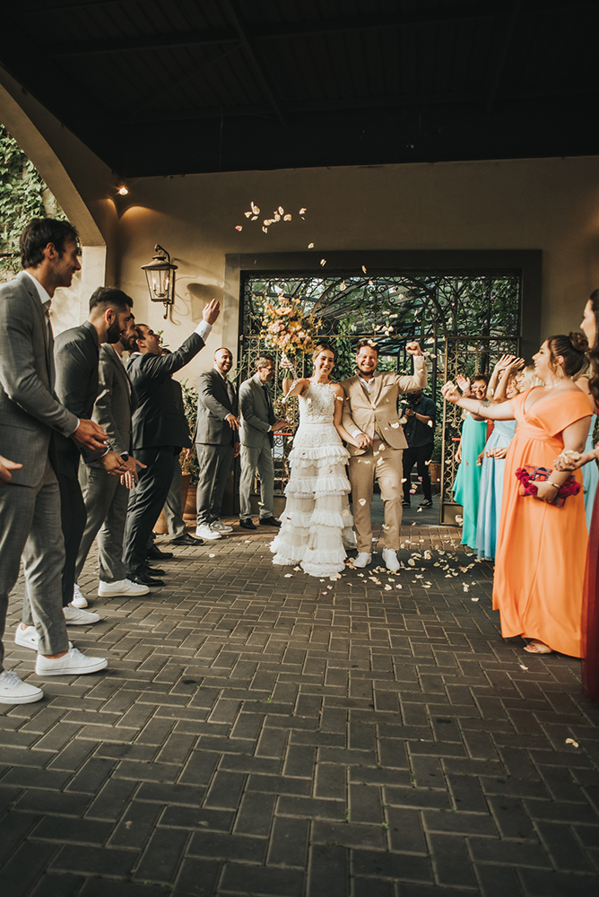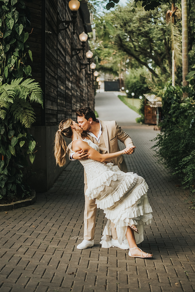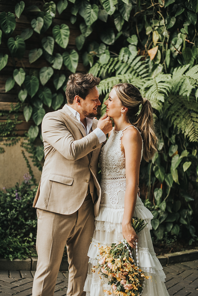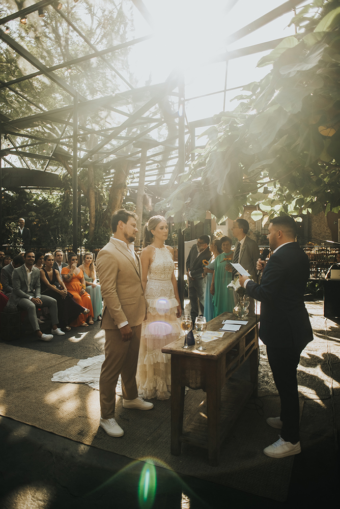 Fotos: Carol Guasti • Vestido de noiva: My Vintage Dress • Local: Sítio São Jorge – Jardim Secreto • Beleza da noiva: Mari Pereira • Celebrante: Sentido Casamento • Decoração: Odeon Decor • Filme: Bruno Ferreira • Sapato da noiva: Arezzo • Sapato do noivo: Vans • Acessórios: Vivara e Tifanny & Co • Robe: costurado pela mãe da noiva • Traje do noivo: Mr. Dsuits • Alianças: Monte Carlo Joias • Doces: Pati Piva e Fernanda Cunha Confeitaria • DJ: Audio Sete • Cabine de fotos: Foto Cabine Estilo e Arte • Caixa de padrinhos e lembrancinhas: Beatriz Varela • Assessoria: Assessoria Noi • Lanchinho de pista: Oggi Sorvete e Mc Donald’s