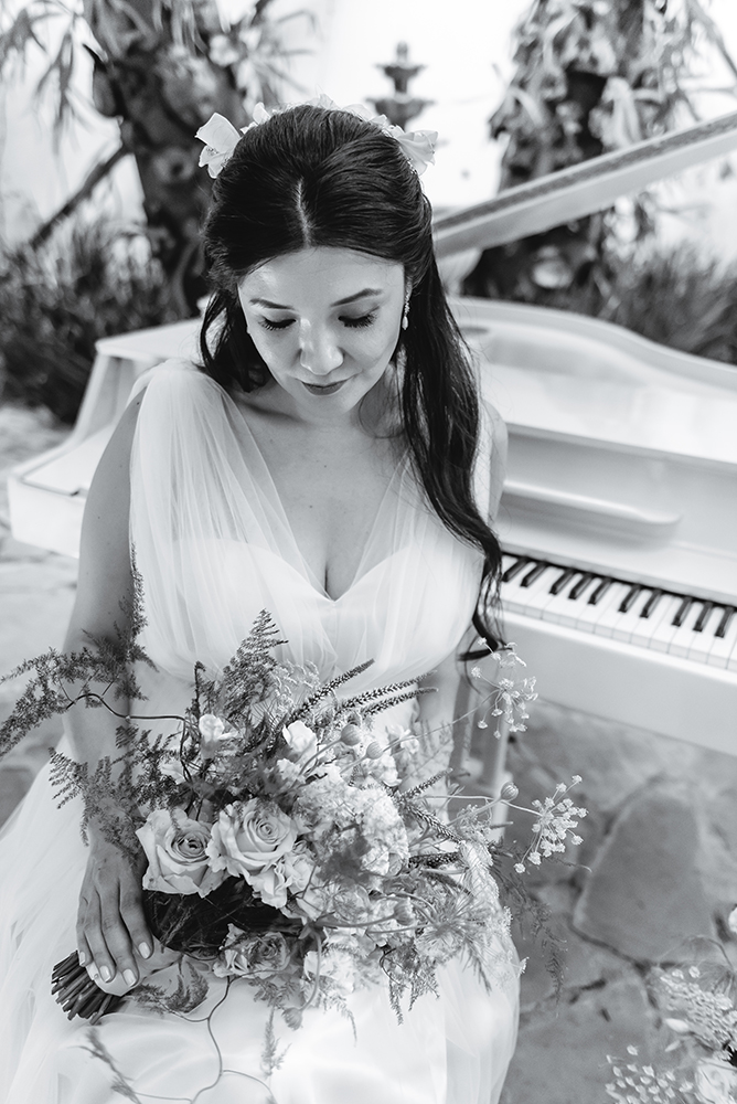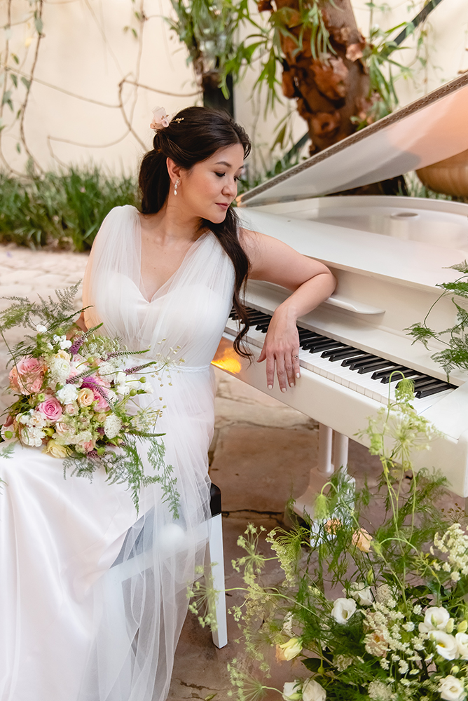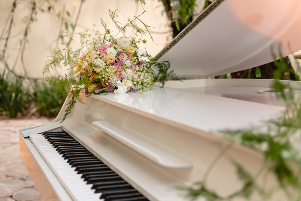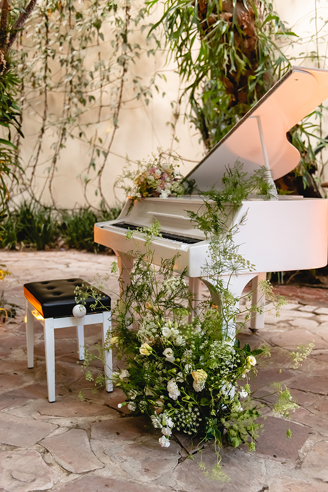 A ideia de fotografar com um piano de cauda é trazer o clássico com essência, afinal, como não suspirar com o cenário preparado na Casa da Donanna?