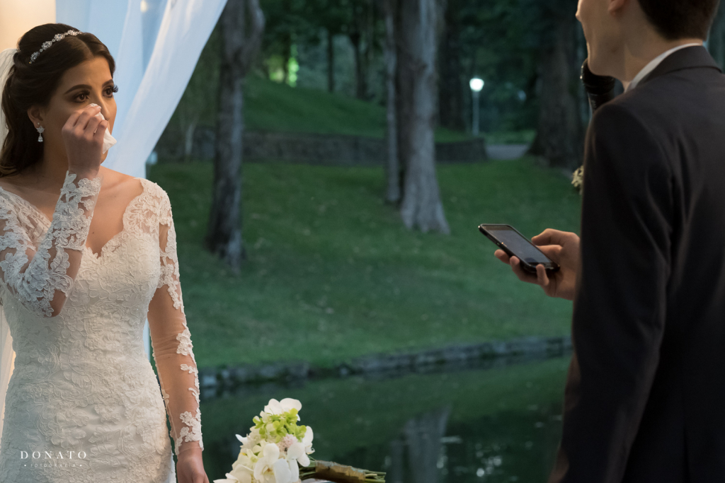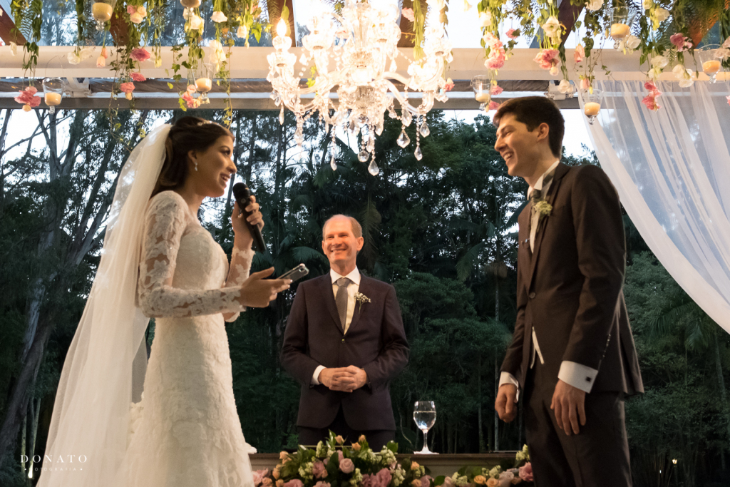 Tem vários detalhes que acredito que fizeram a diferença: na cerimônia, minha irmã gêmea e um dos meus cunhados falaram sobre mim e o Davi de surpresa. Foi muito especial! Meu sogro fez a cerimônia, o que tornou tudo ainda mais familiar!