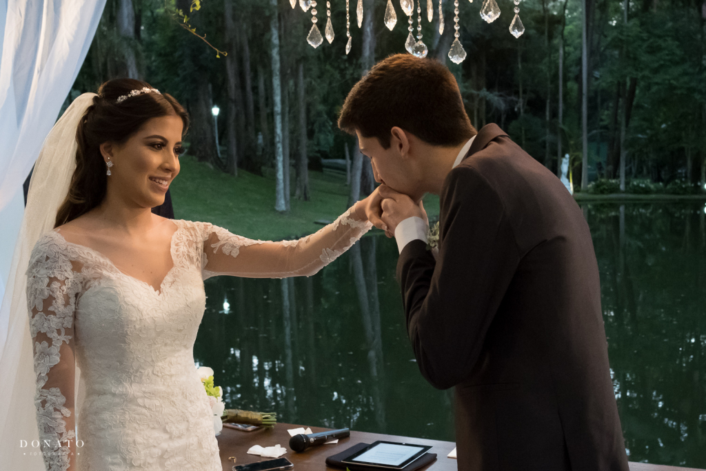 Visitamos a Fazenda 7 Lagoas antes de ficarmos noivos e decidimos que casaríamos ali! No final de semana seguinte fui mostrar para meu pai o lugar e o Davi tinha dito que ficaria em Curitiba. Quando chegamos na Fazenda, fomos até o chalé da noiva e de repente, o Davi saiu de trás de uma torre, com flores e uma caixinha na mão, se declarou, ajoelhou e me pediu em casamento. Foi muito emocionante! Ficamos noivos no local que casamos!