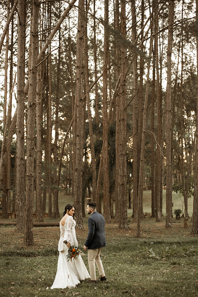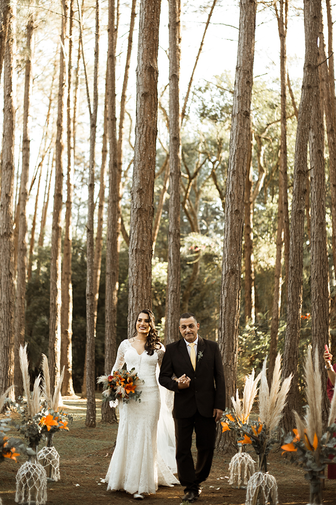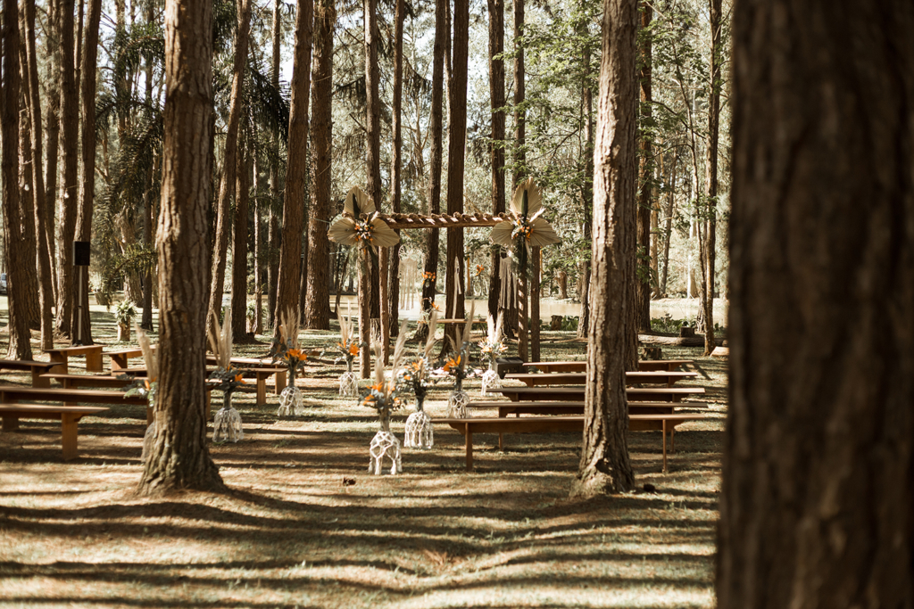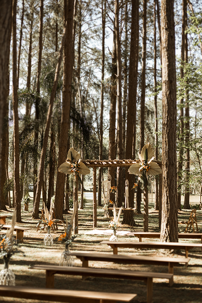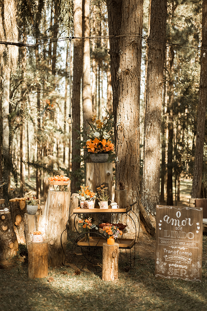 Com vocês, um lindo casamento boho na floresta.