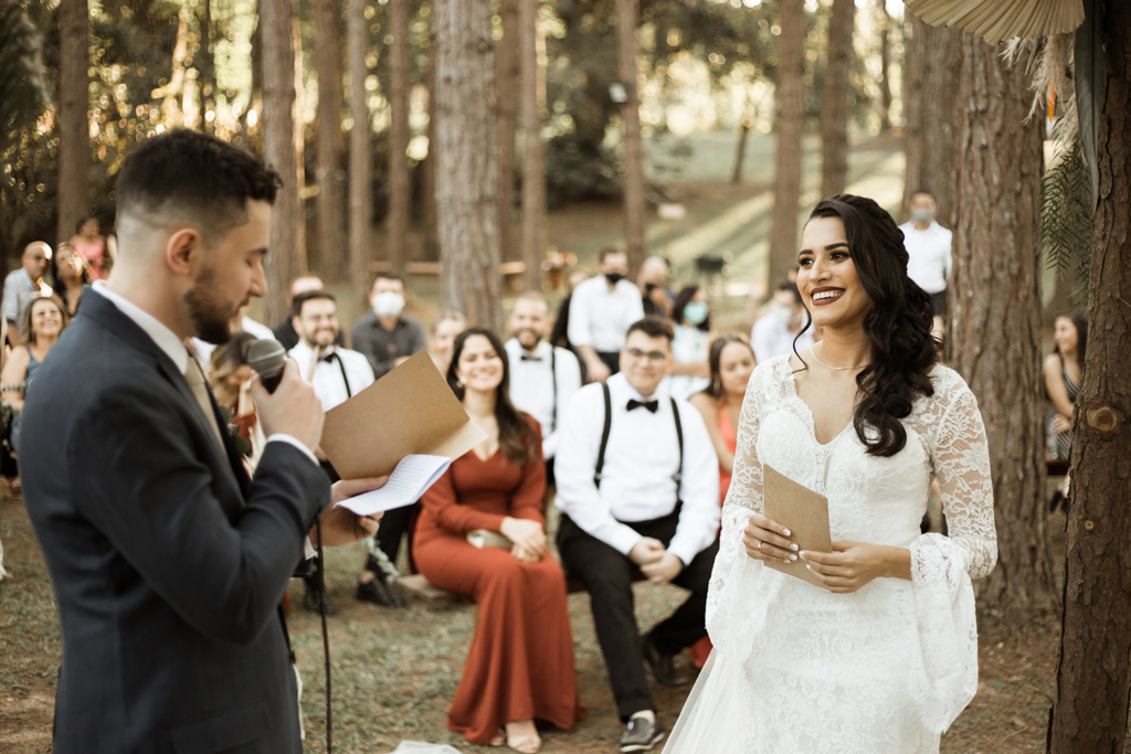 Bianca e Lucas celebraram o amor em um lindo casamento na floresta. Só para ilustrar, foi um mini wedding rodeado por pessoas queridas, flores vibrantes e grandes doses de emoção.