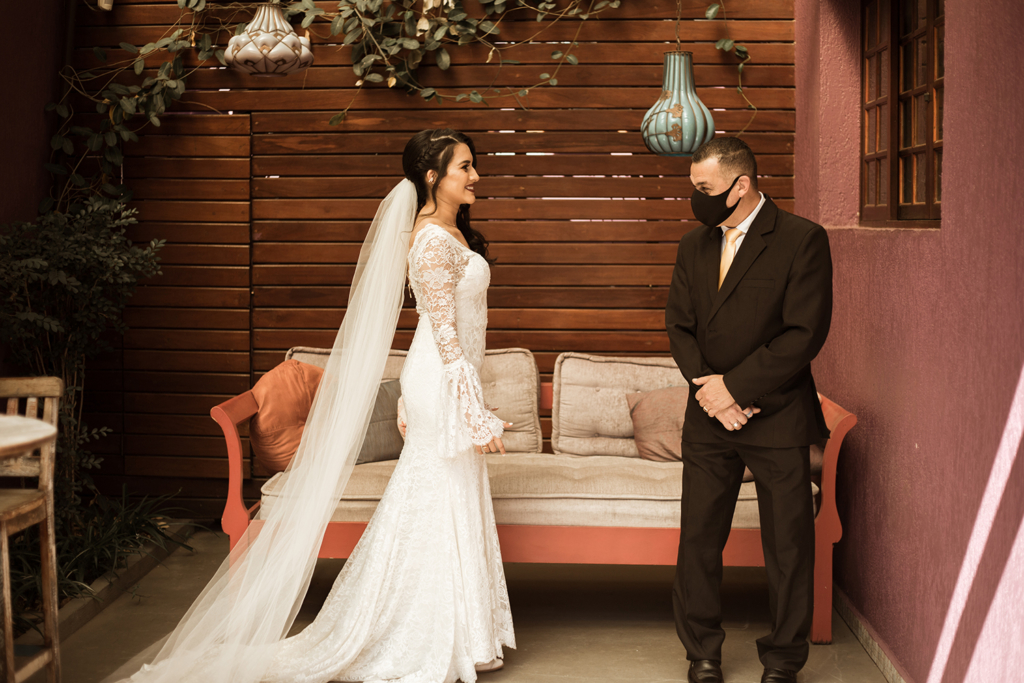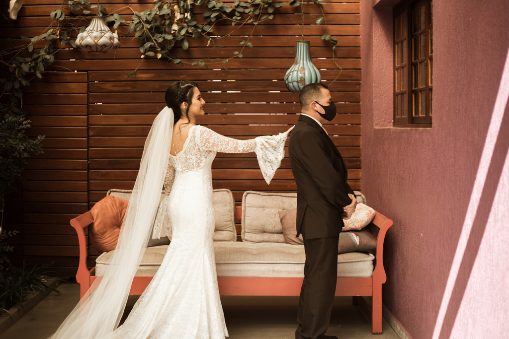 “Como nos casamos no meio de uma pandemia, fomos muito testados nisso. Conversamos diversas vezes sobre adiar, cancelar, ou casar só nós dois, só com a família…