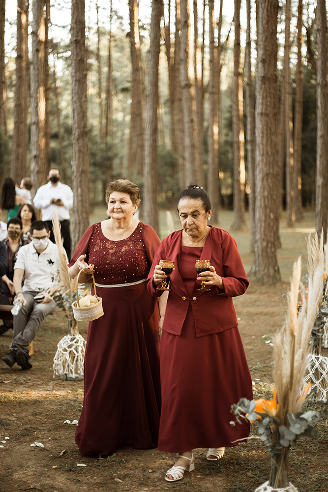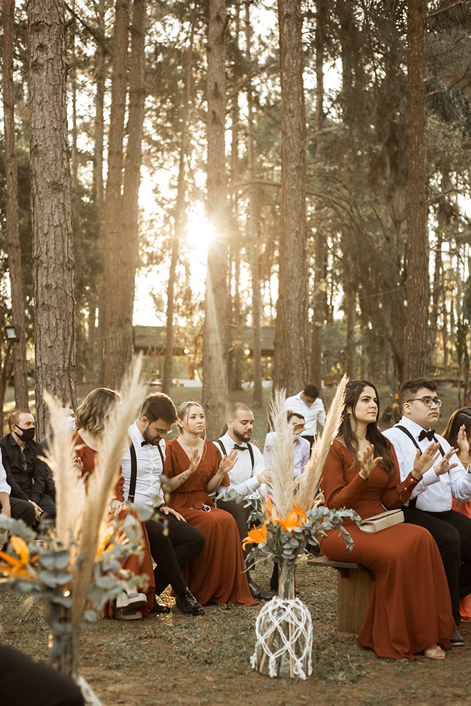 Sim na floresta: casamento boho com paleta coral