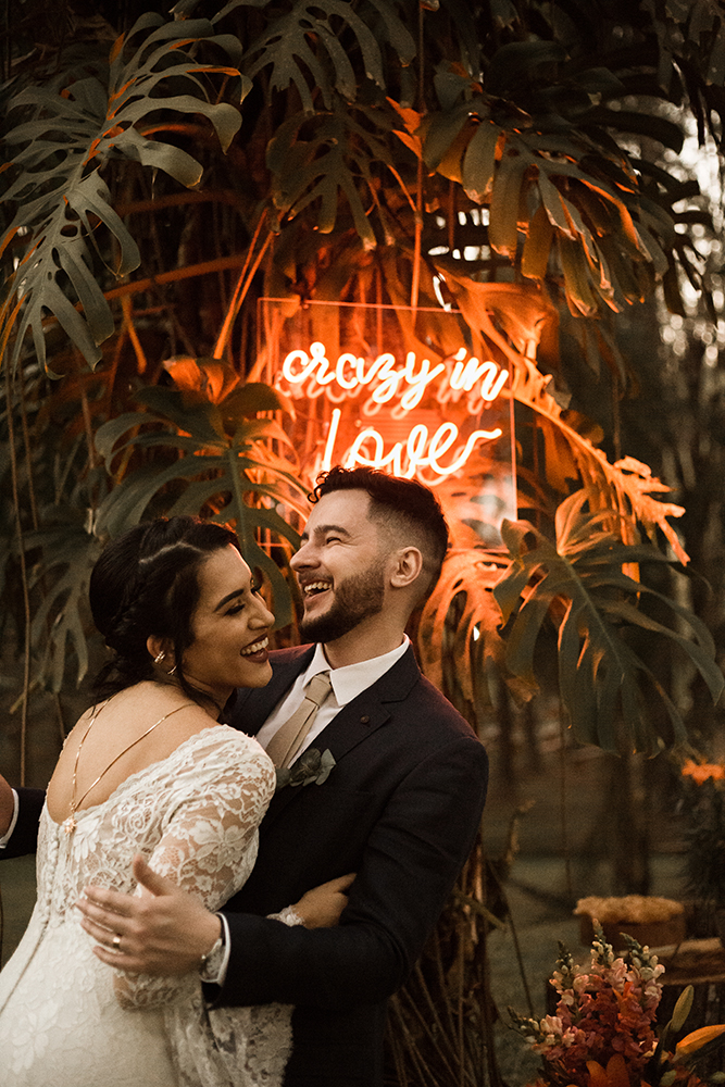 Do neon anunciando noivos loucos de amor ao buquê exuberante, cada item é um suspiro e uma razão para que a gente se encante.