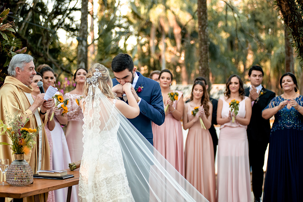 O SIM da Bianca e do Matheus teve cerimônia ao ar livre e festa animada, incluindo gastronomia do Baracat Buffet e fotos por Renata e Yuri Fotografia.