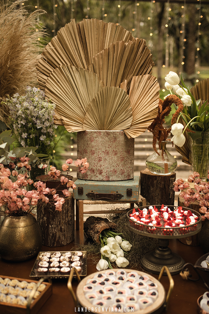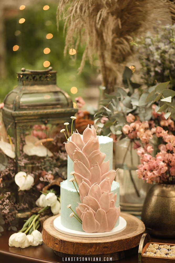 Da papelaria da Estudio Pinus ao bolo delicado da Baking Dreams, passando pelos doces, iluminação e mesa posta, tudo se conecta pela suavidade de tons e texturas, que resultam em uma explosão de inspirações.