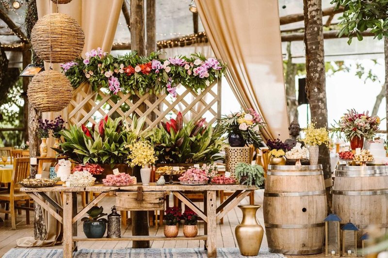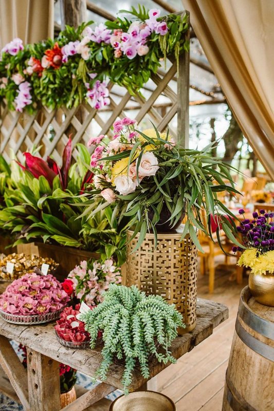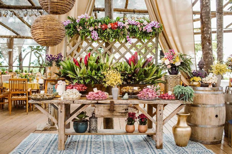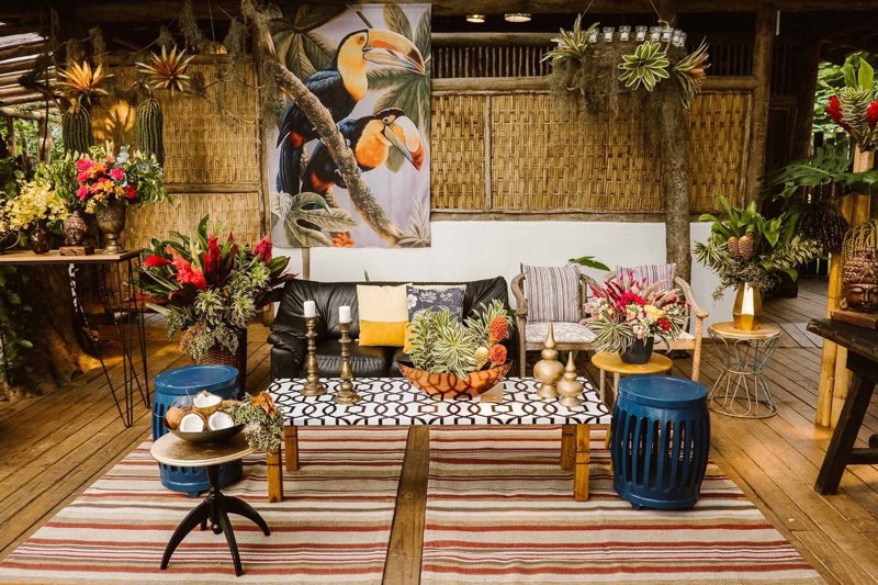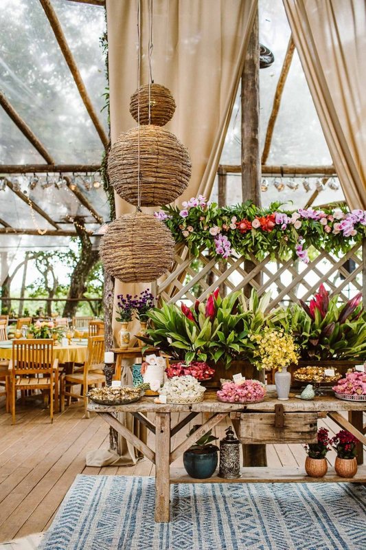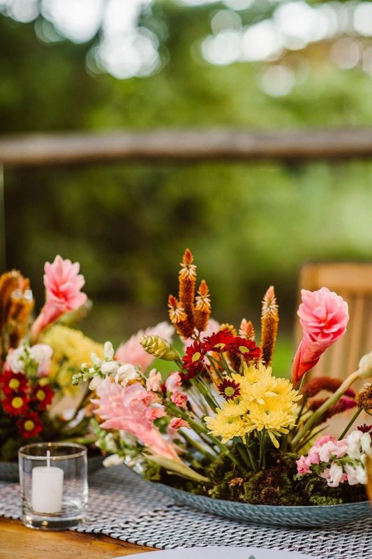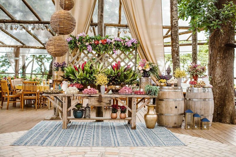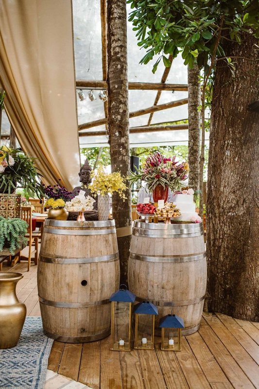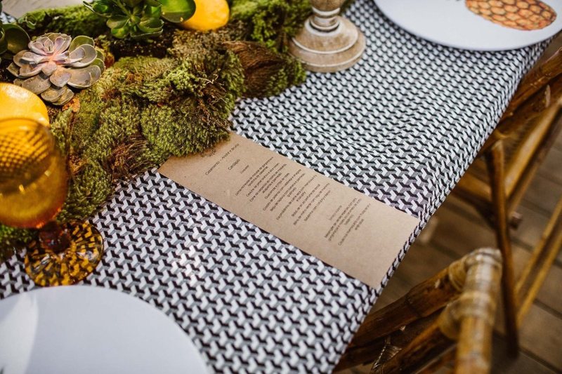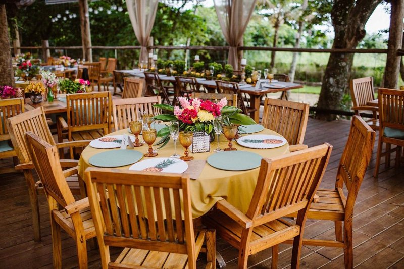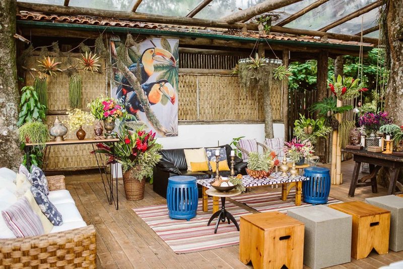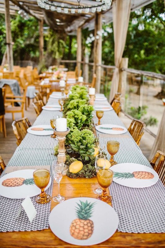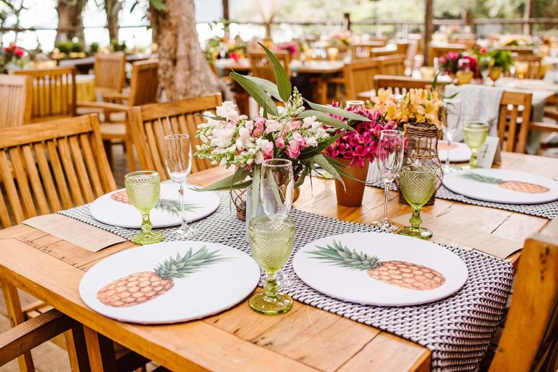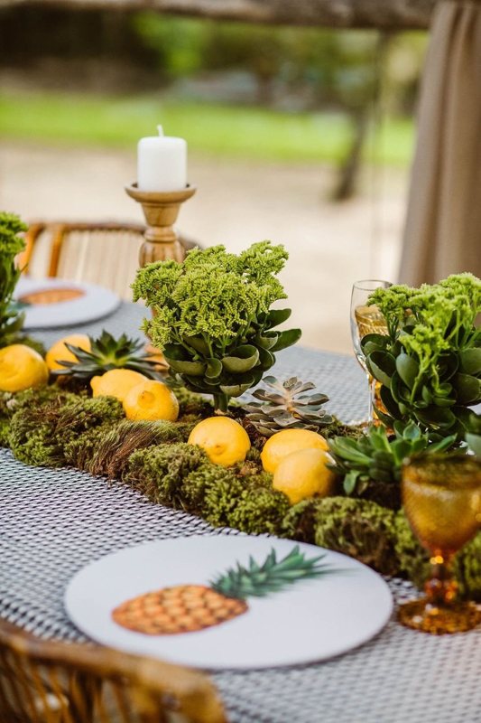 A produção da Flor da Mata teve muitas cores e abraçou a proposta tropical de um jeito nada óbvio, com tucanos e abacaxis estampados e limão siciliano compondo a decor. Um sonho colorido!