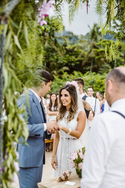 O casal trocou alianças em Toque Toque Pequeno, incluindo decoração dos sonhos e fotos para guardar na pastinha de inspirações.