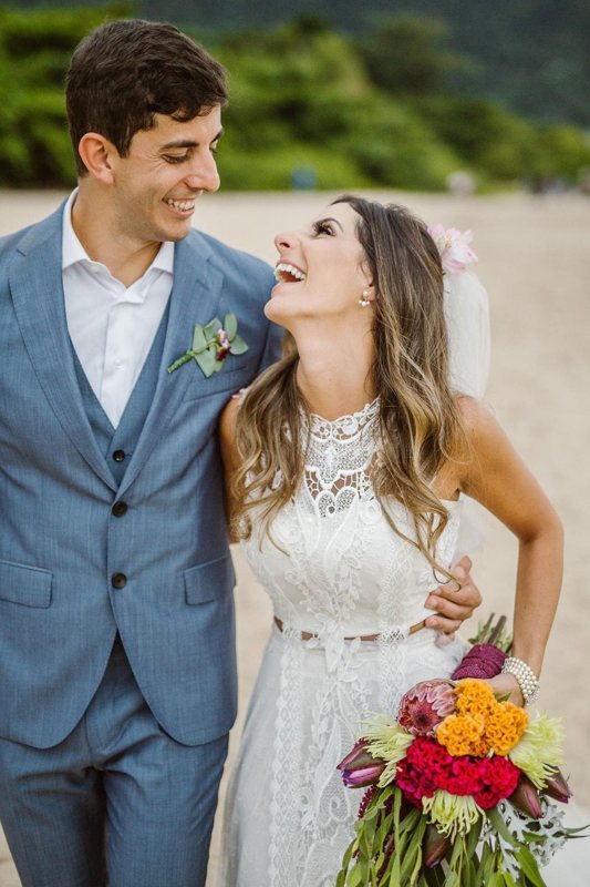 O feriado vem aí e mesmo com o céu teimando em ficar cinza, é dia de compartilhar com  vocês o casamento pé na areia, alegre e colorido da Bruna e do André.