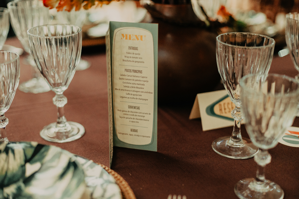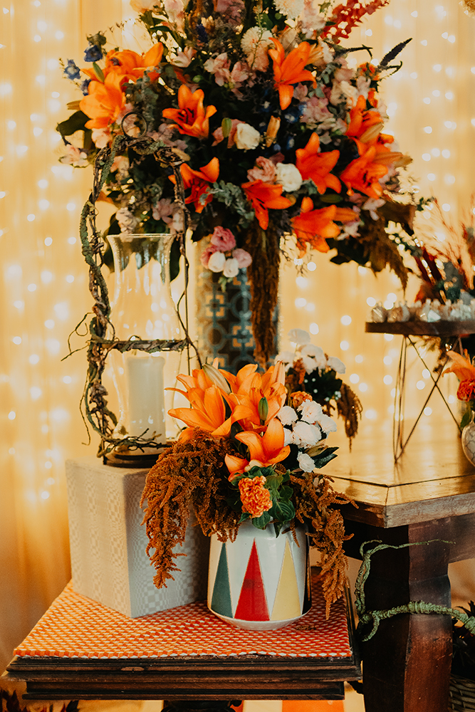 Do convite colorido até a decoração em tons terrosos, os elementos saltam aos olhos, transbordando amor e personalidade.