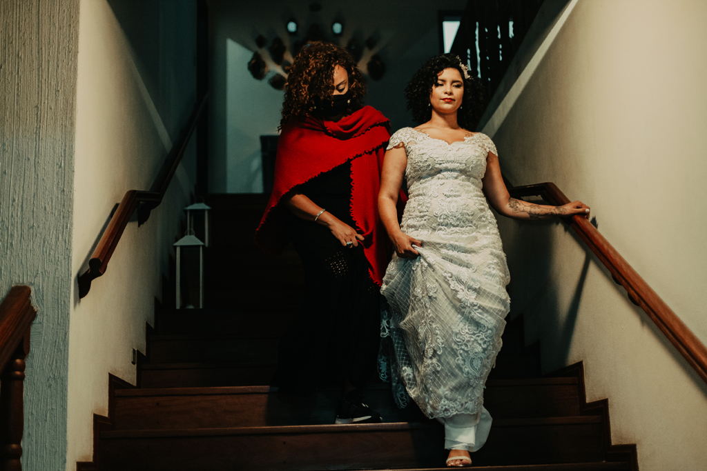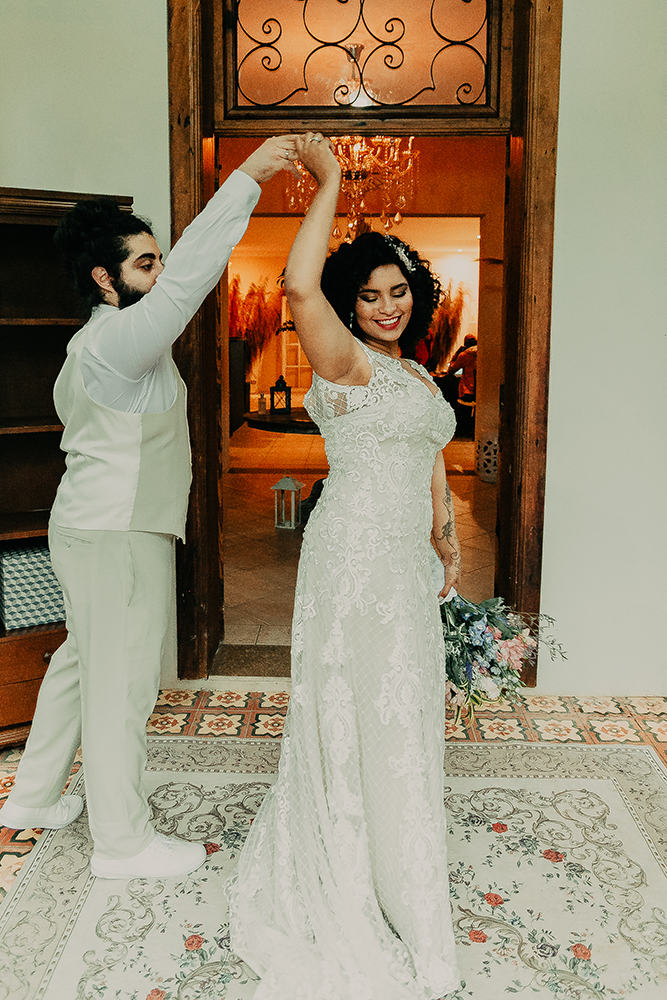 A noiva, inclusive, ficou linda com vestido de noiva assinado por Pamela Gonzales.