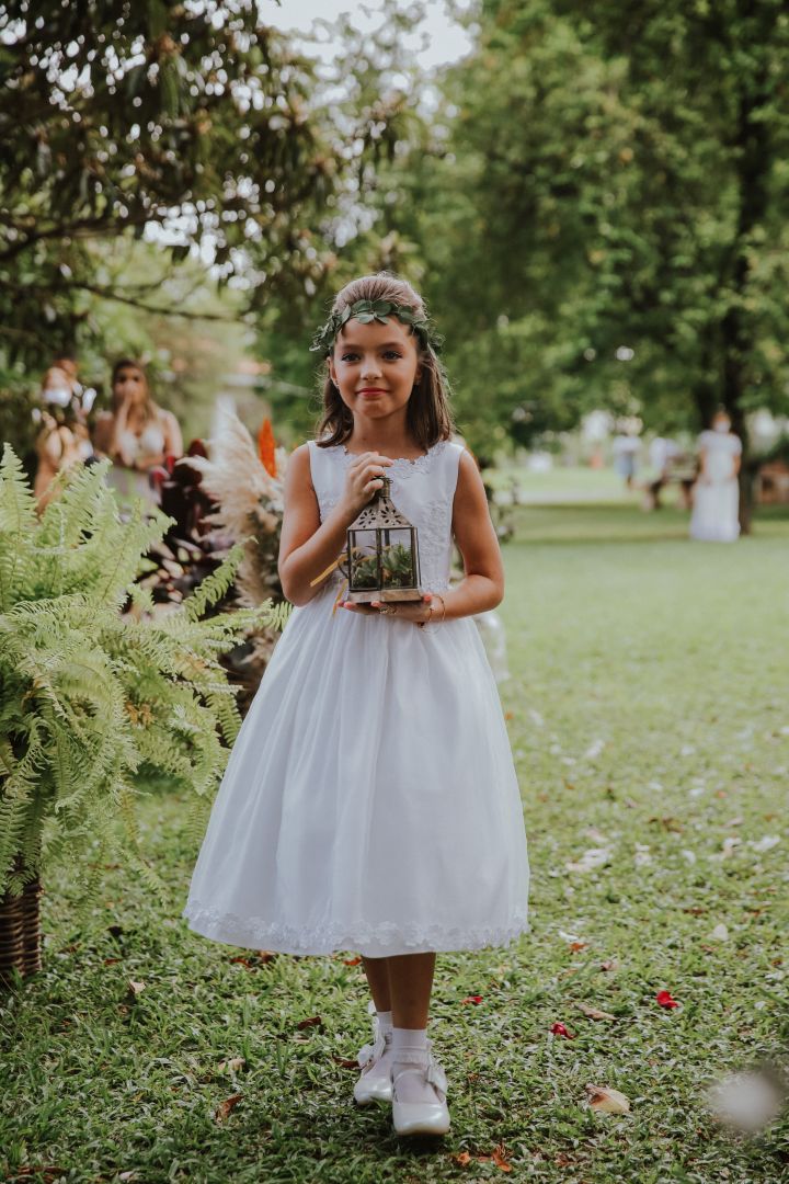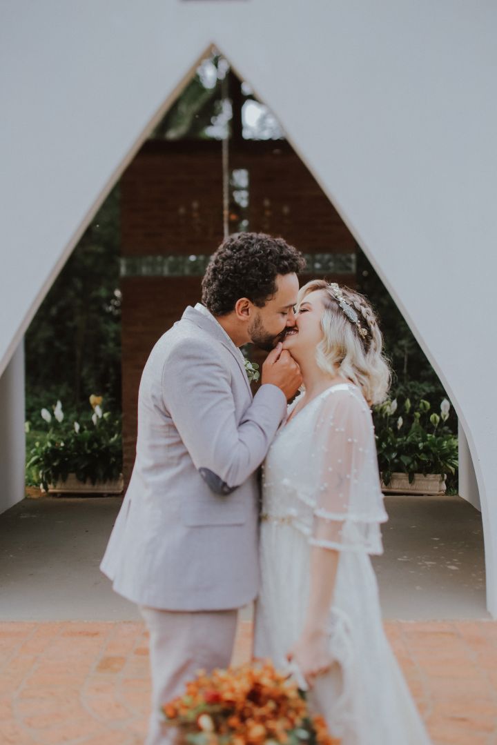 Tivemos que cancelar a data de abril, e como não tínhamos certeza de mais nada, remarcamos para o mês de junho. Ao entrar no mês de junho, a situação só piorou, e tivemos que cancelar a festa mais uma vez. Decidimos então manter o casamento civil. Fizemos uma pequena cerimônia na casa dos meus pais, decoramos e fizemos uma transmissão ao vivo para os convidados. Foi tão lindo! Foi como sonhávamos desde o começo, desde quando começamos a falar sobre casamento. Uma cerimônia apenas com os pais e os avós, simples, natural e emocionante”.