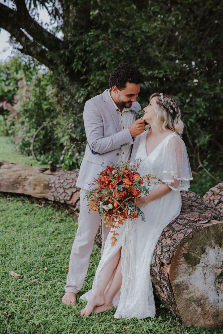 Antes que se apaixonassem, ficaram amigos. Foram muitas conversas, trocas e risadas. Como resultado, nasceu o amor e veio o lindo casamento com personalidade ao ar livre.