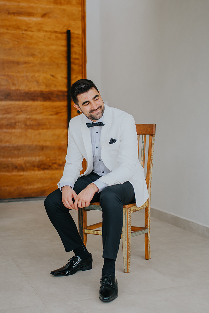 Nossas roupas seguiram o mesmo estilo dos nossos avós. Queríamos vestir a melhor roupa de nossas vidas e buscamos mostrar isso através dos detalhes. Lenços, acessórios clássicos, gravatas e óculos de sol. Tive dois vestidos, um para a cerimônia e outro para a festa. O segundo mais confortável para dançar, porque sabia que aproveitaria muito!
